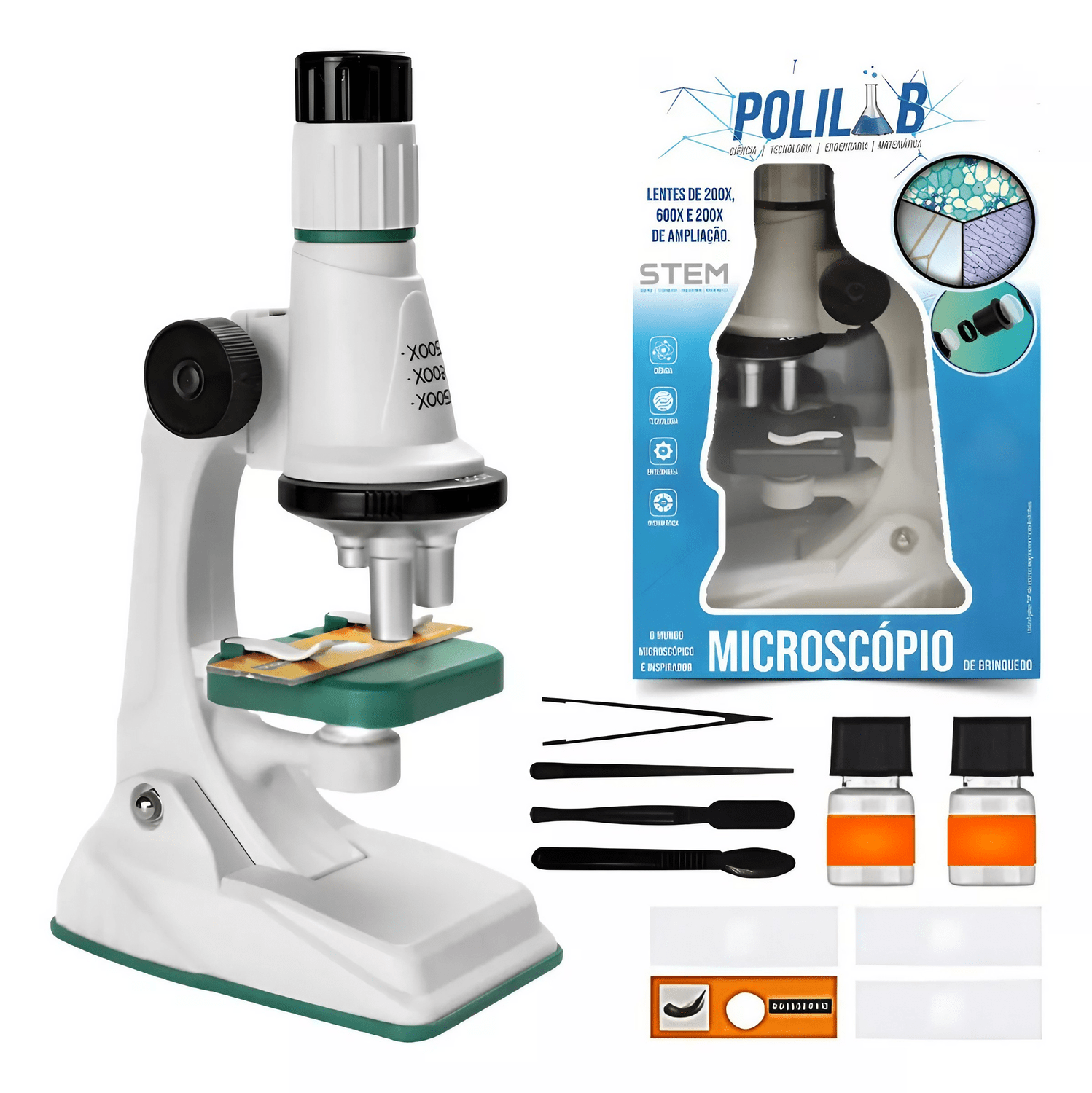 Explore o fascinante mundo microscópico com o Microscópio Polilab! Desenvolvido especialmente para despertar a curiosidade natural das crianças, este equipamento proporciona uma emocionante introdução à exploração do maravilhoso mundo microbiano. Com uma incrível ampliação de até 1200x e iluminação de LED, o Microscópio Polilab oferece uma observação detalhada de diversos espécimes, permitindo que as crianças se sintam verdadeiros cientistas enquanto exploram o mundo invisível ao olho nu.