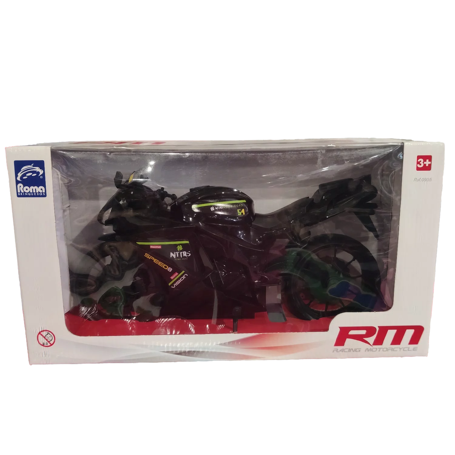 A Moto RM Racing Motorcycle Preta é uma moto excepcionalmente detalhada, repleta de elementos que fazem toda a diferença! Equipada com faróis de acrílico, carenagem super realista e pezinho de descanso, esta moto não apenas impressiona pelos detalhes, mas também pelo seu tamanho generoso, com 34 cm de comprimento e 18 cm de altura. Esta é verdadeiramente uma super moto que promete levar as aventuras das crianças para um novo patamar.