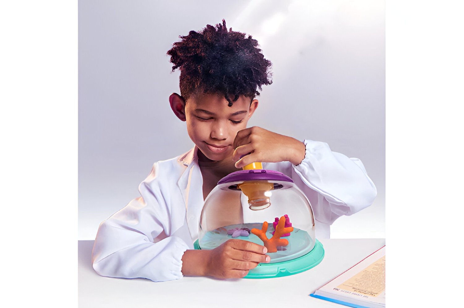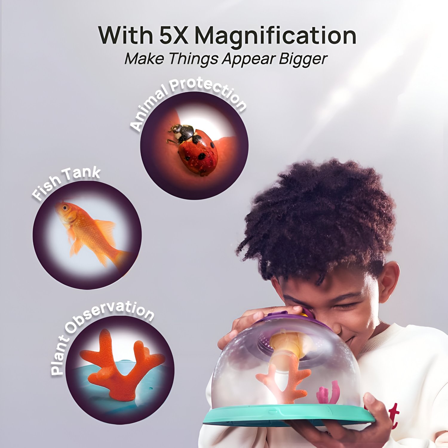 Com o Observatório Novo Cientista Estudo de Peixes e Insetos, as crianças poderão explorar e aprender mais sobre a fascinante vida dos insetos e peixes. Este observatório foi projetado para proporcionar uma experiência de observação única, com um foco na preservação da vida dos animais, permitindo que as crianças vejam o mundo de uma nova perspectiva. Fácil de usar, o observatório tem furos para troca de ar na parte superior, garantindo a ventilação necessária. Além disso, o interior não entra em contato direto com a criança, permitindo que ela observe pela lateral de acrílico ou pela luneta, que aproxima 5x para uma visualização mais detalhada do cotidiano do inseto ou peixe.