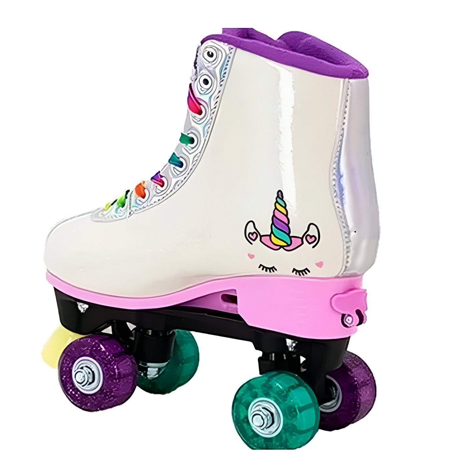 Explore o mundo com muito brilho usando o Patins Roller Unicórnio Ajustável Fenix (35 ao 38)! Com rodinhas iluminadas que acendem ao girar (sem precisar de pilhas) e um sistema de ajuste de tamanho superprático, esse patins une conforto, estilo e diversão. Ideal para acompanhar o crescimento da criança com segurança e charme.
