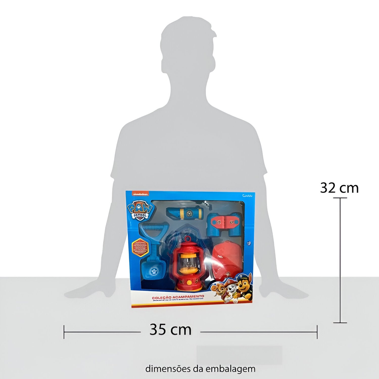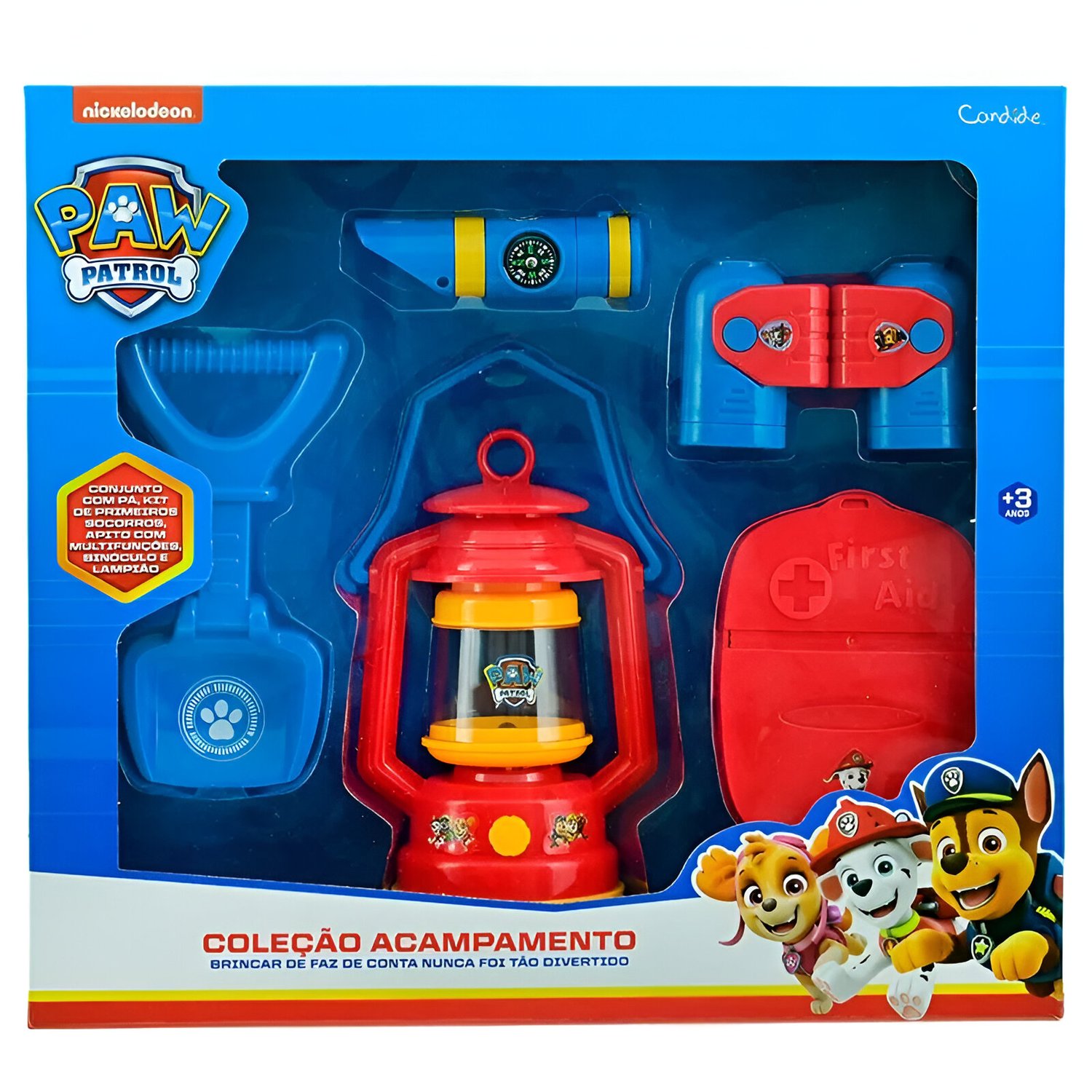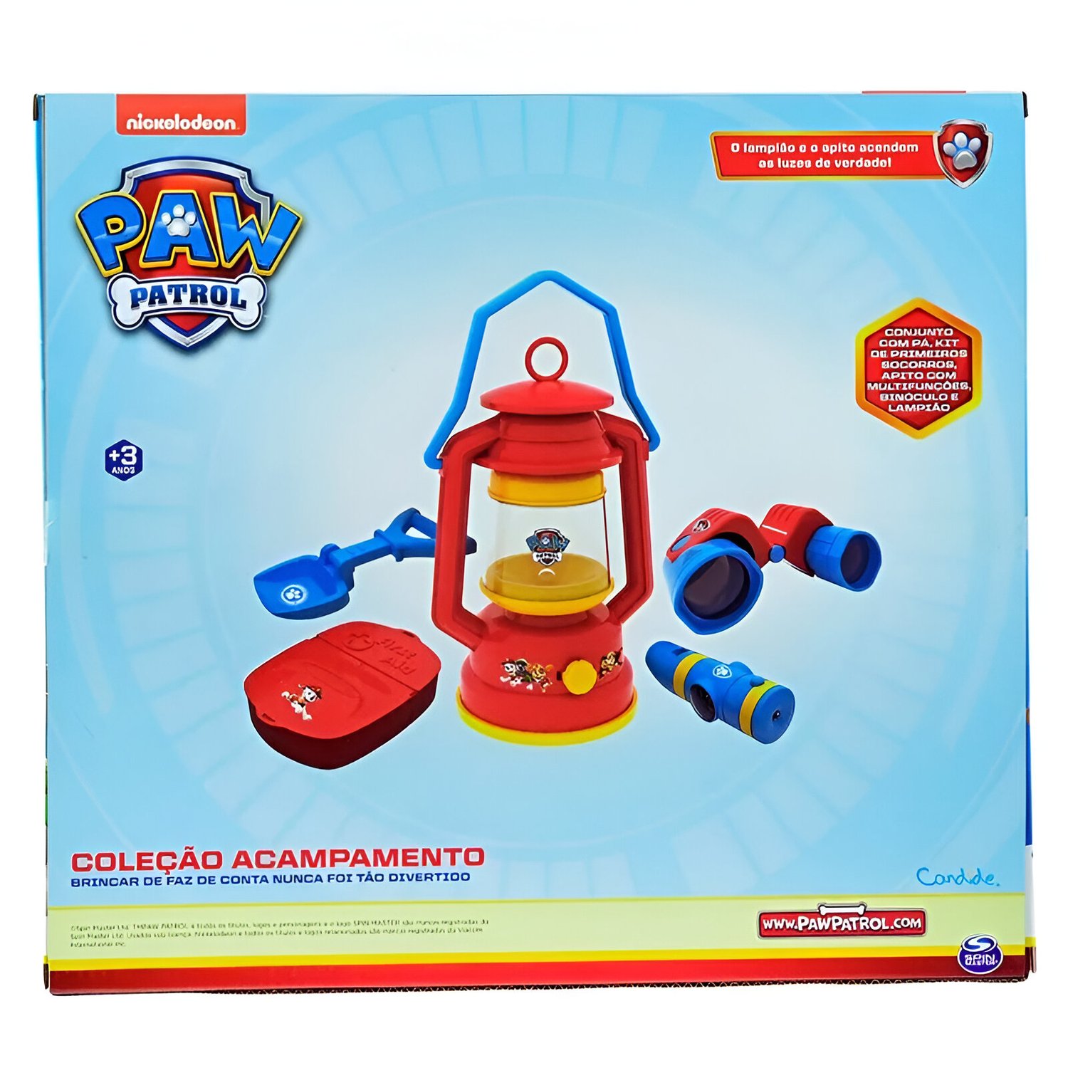 A turma da Patrulha Canina – com Chase, Marshall, Rubble e Skye – está pronta para uma nova e divertida aventura de acampamento! Eles vão precisar de sua ajuda para resgatar um amigo, e com o Paw Patrol – Camping – Kit com Lampião e Cantil, você pode acampar ao lado deles e participar da missão de “salvar o bairro”!