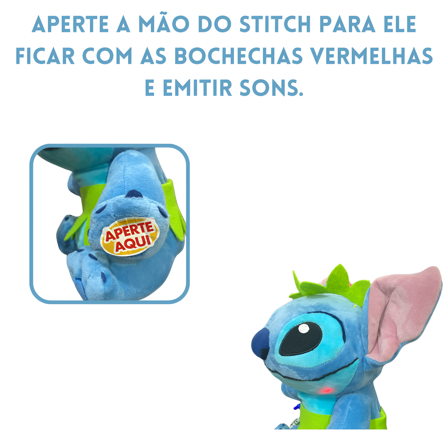 A Pelúcia Stitch Hula Hula de 30cm é perfeita para os fãs desse adorável personagem! Com um visual inspirado na dança havaiana, ela traz um toque tropical e divertido para qualquer coleção. O grande diferencial está no mecanismo de luz e som, que ativa luzes brilhantes e sons tropicais ao ser apertada, transportando você diretamente para as praias do Havaí!