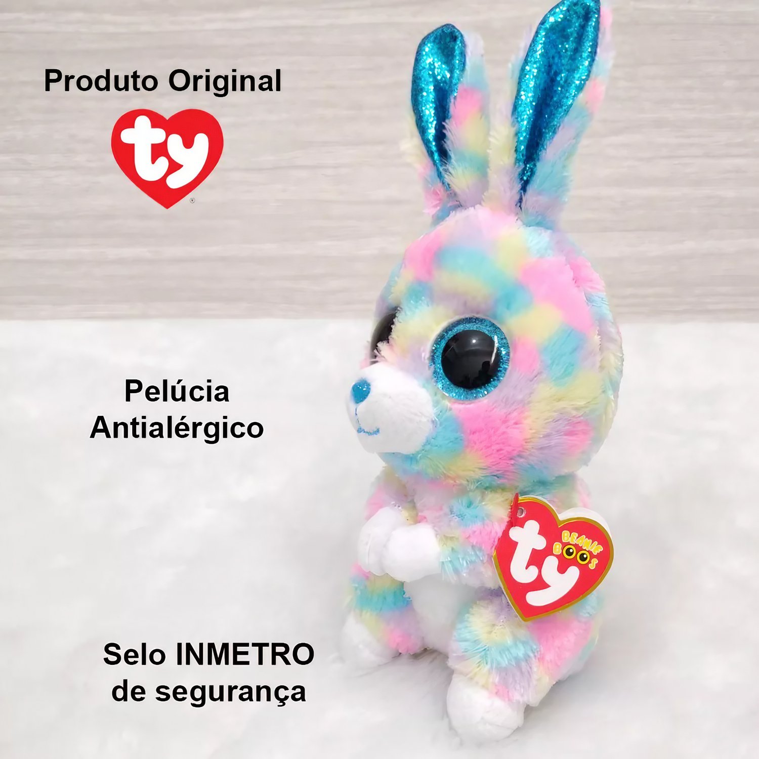 Hops, o Coelho Multicolorido, é uma explosão de cores em forma de pelúcia. Este Beanie Boos é coberto por manchas azuis, rosa, amarelas e lilás, tornando-o visualmente encantador. Seus olhos de botão azuis brilhantes, focinho branco e detalhes em azul em suas orelhas internas adicionam um toque especial. Hops é perfeito para colecionar, sendo adorado por crianças e adultos de todas as idades. Celebre o aniversário de Hops em 03 de abril.