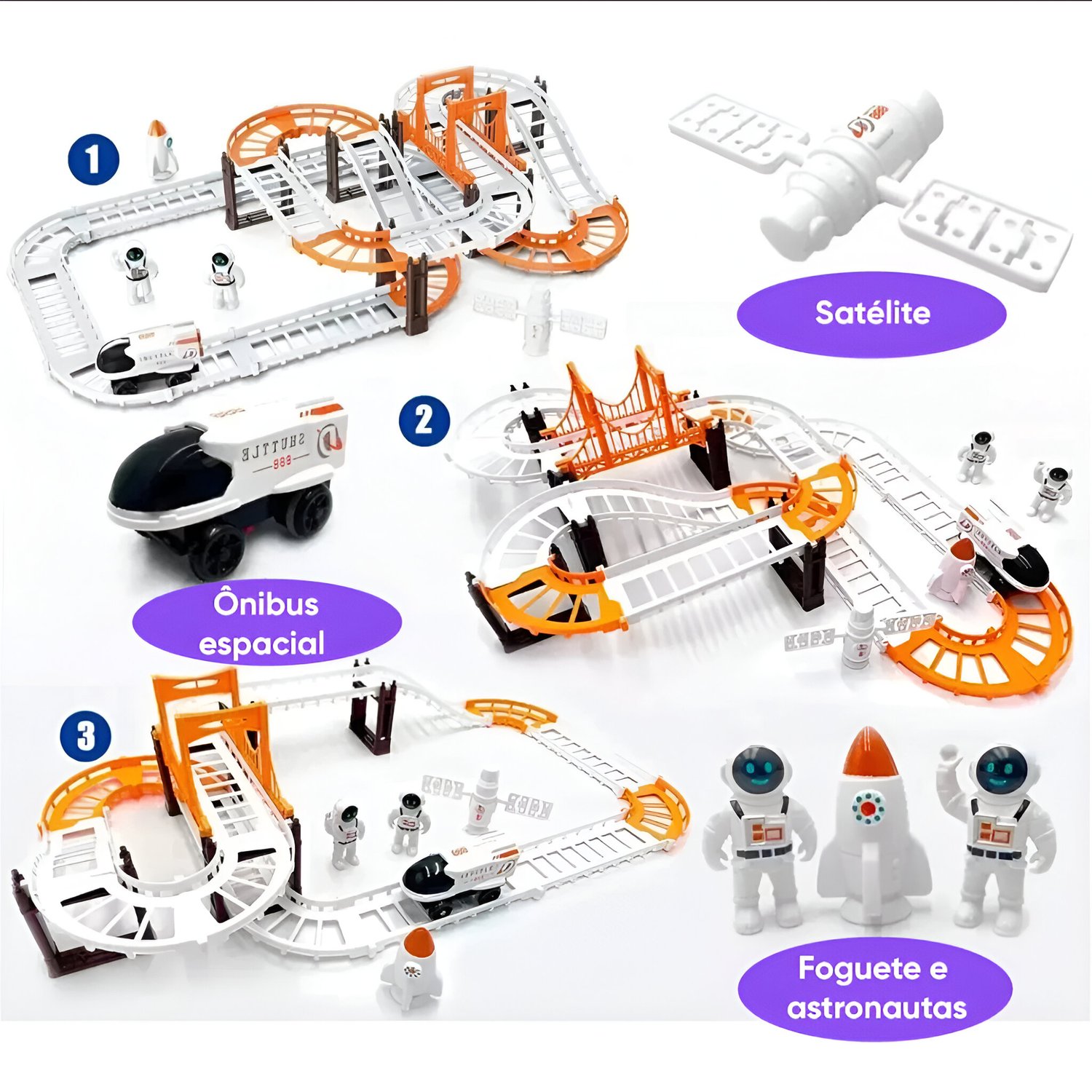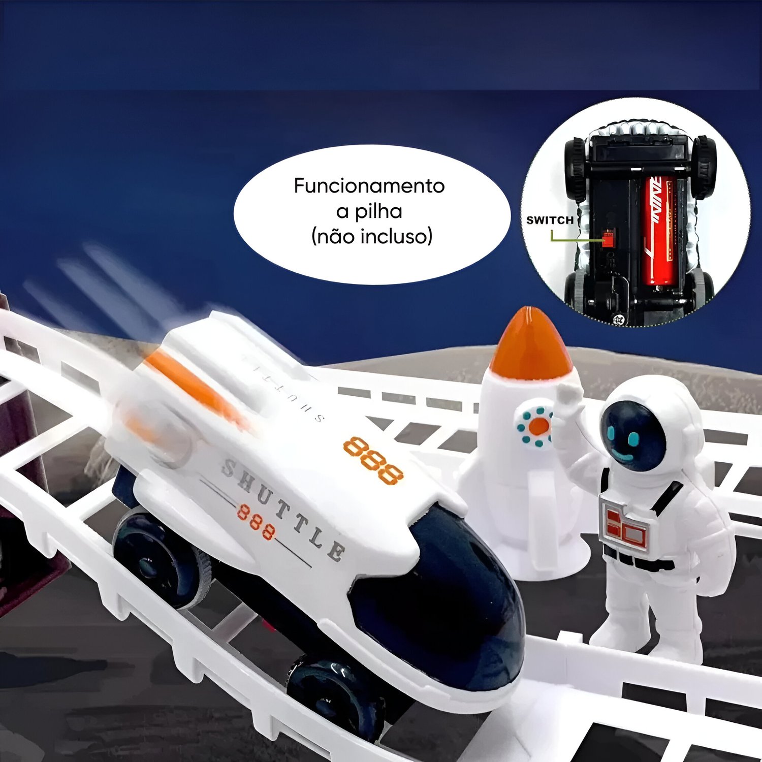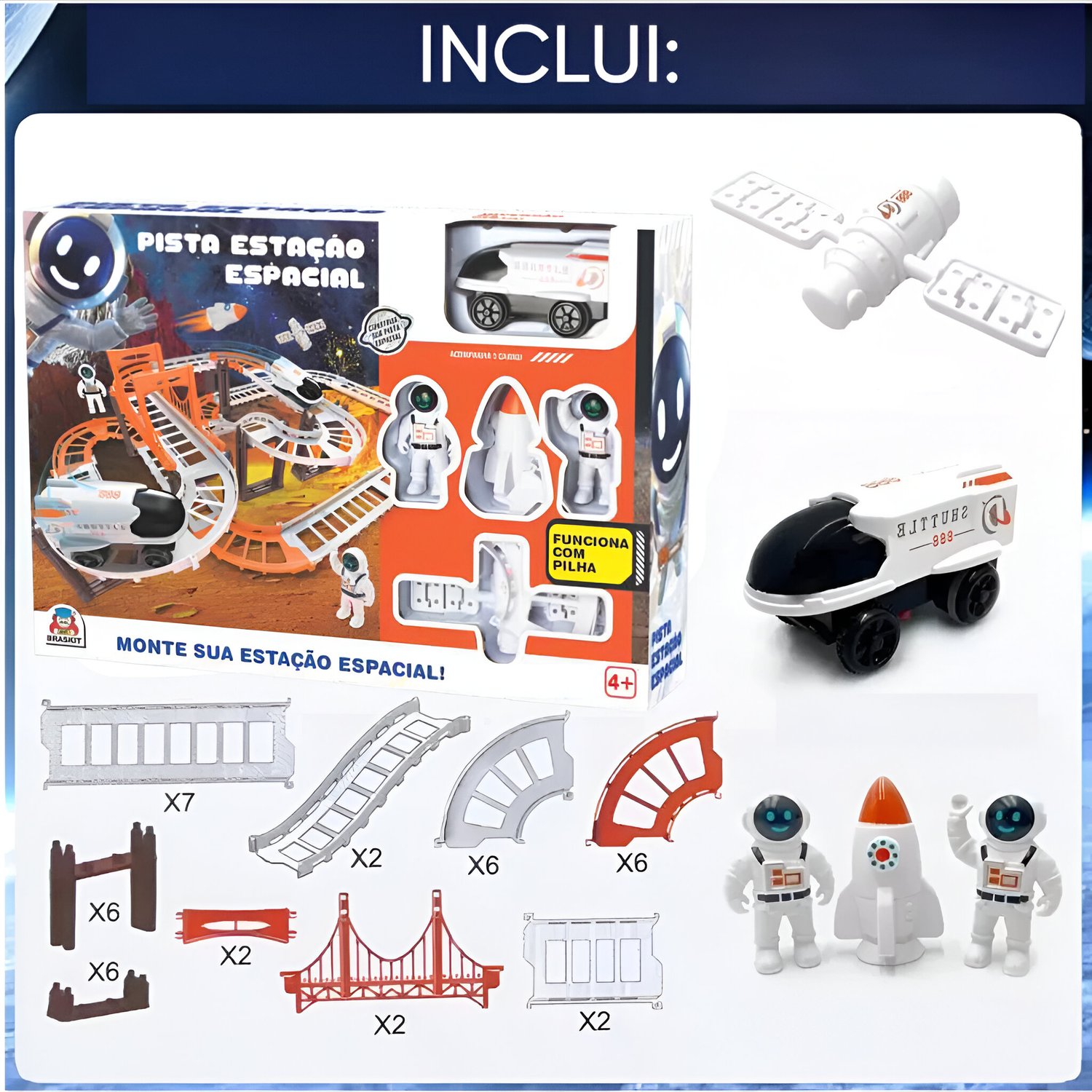 Prepare-se para uma aventura fora deste mundo com a Pista Estação Espacial! Com um cenário incrível que leva a imaginação das crianças direto para o espaço, este conjunto acompanha um ônibus espacial motorizado, foguete, astronautas e satélite. Basta colocar as pilhas e ver o carrinho deslizar por curvas, subidas e descidas em uma jornada emocionante.