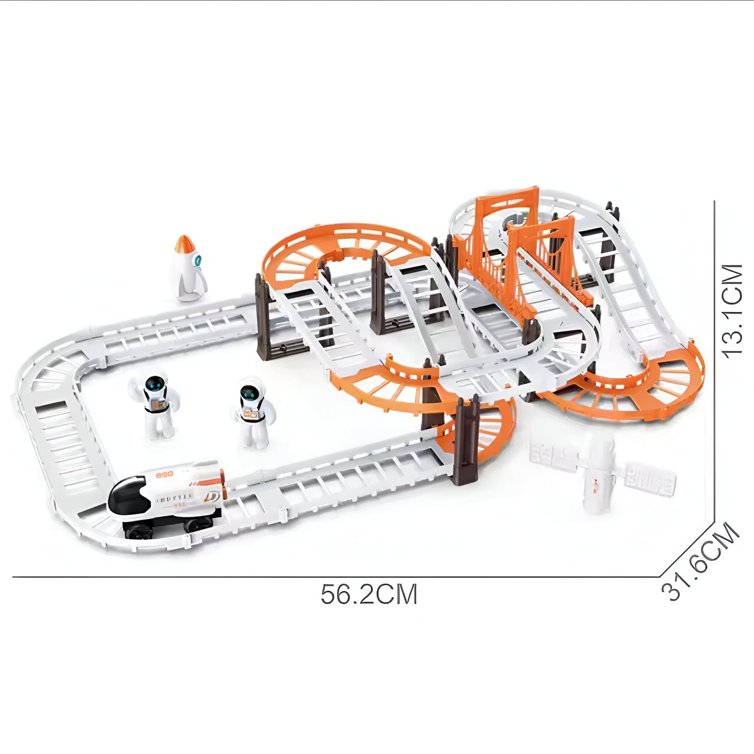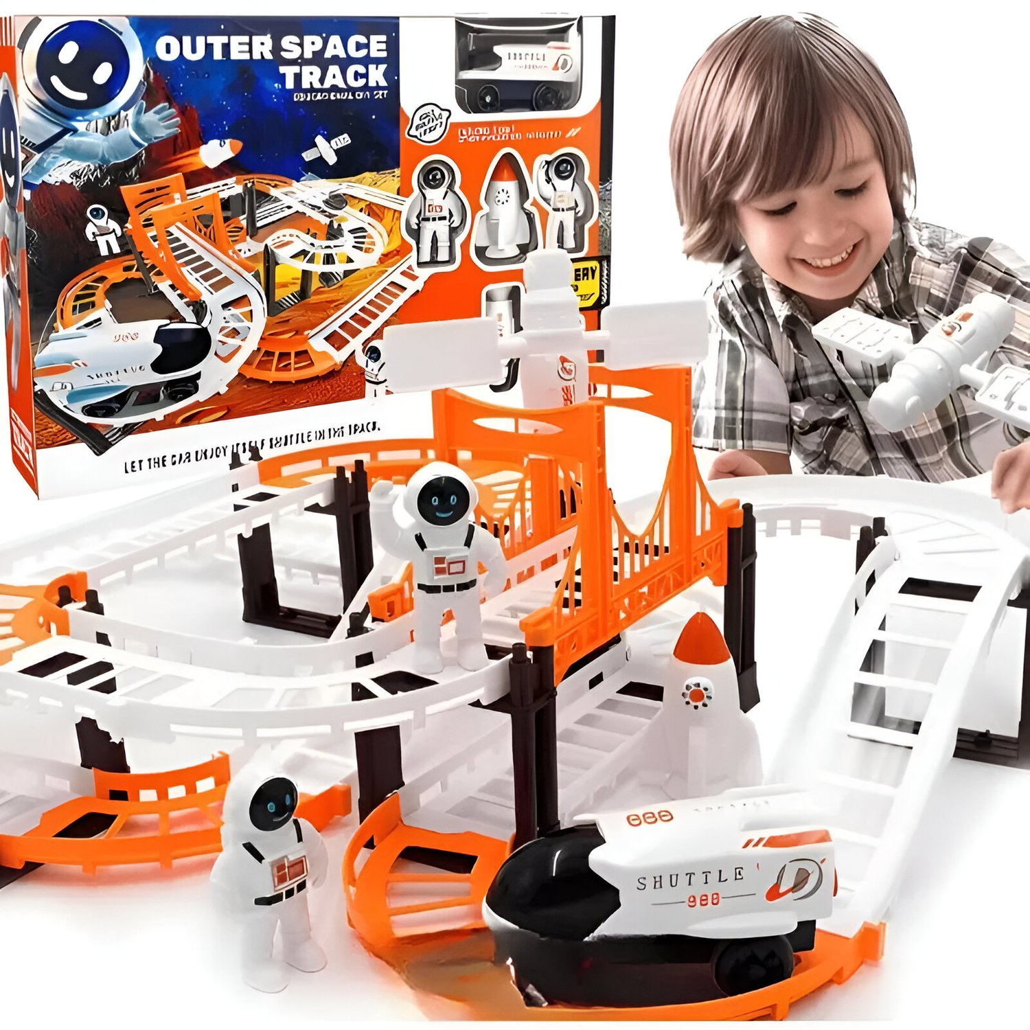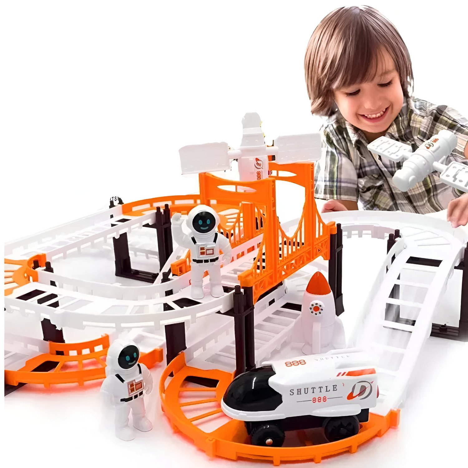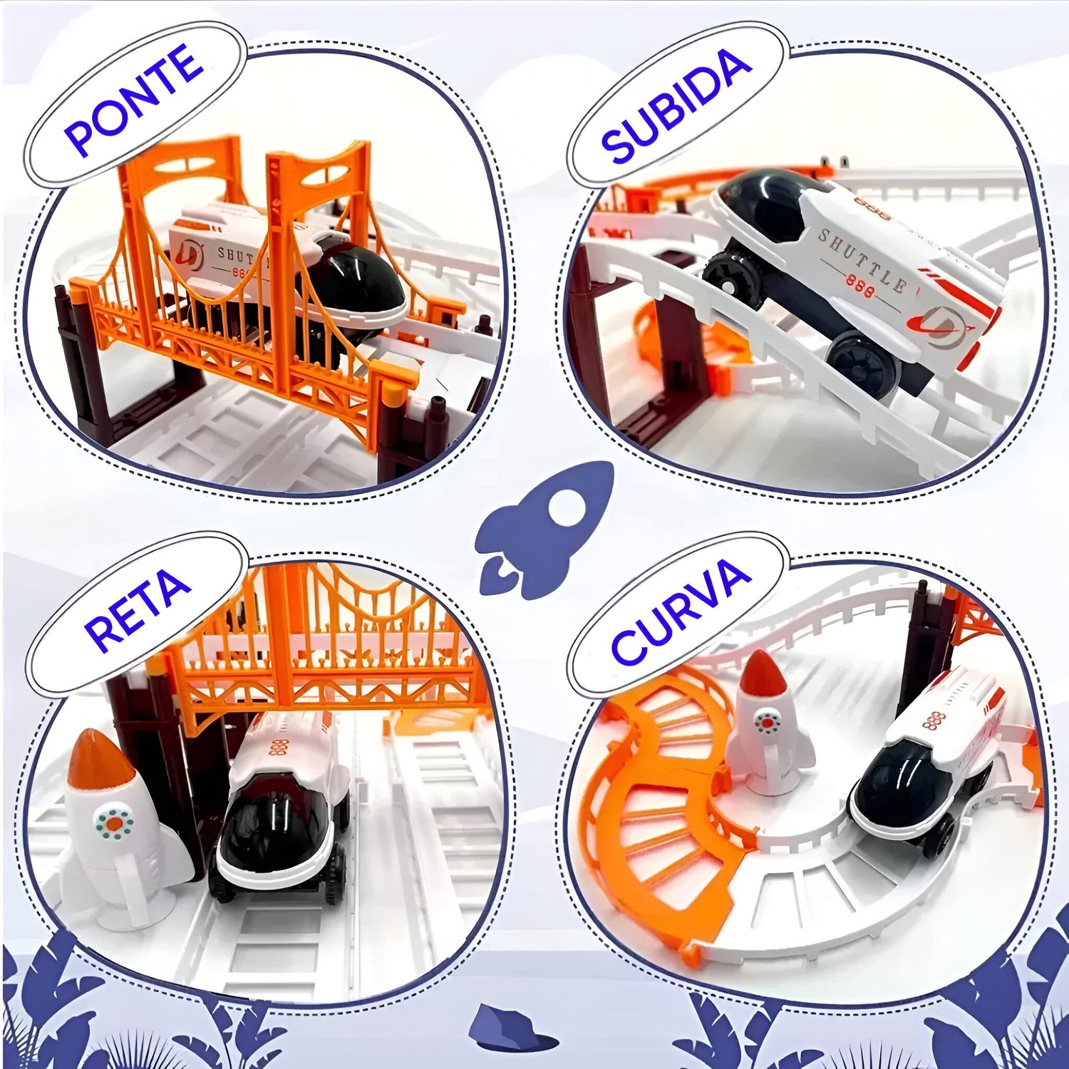 Prepare-se para uma aventura fora deste mundo com a Pista Estação Espacial! Com um cenário incrível que leva a imaginação das crianças direto para o espaço, este conjunto acompanha um ônibus espacial motorizado, foguete, astronautas e satélite. Basta colocar as pilhas e ver o carrinho deslizar por curvas, subidas e descidas em uma jornada emocionante.