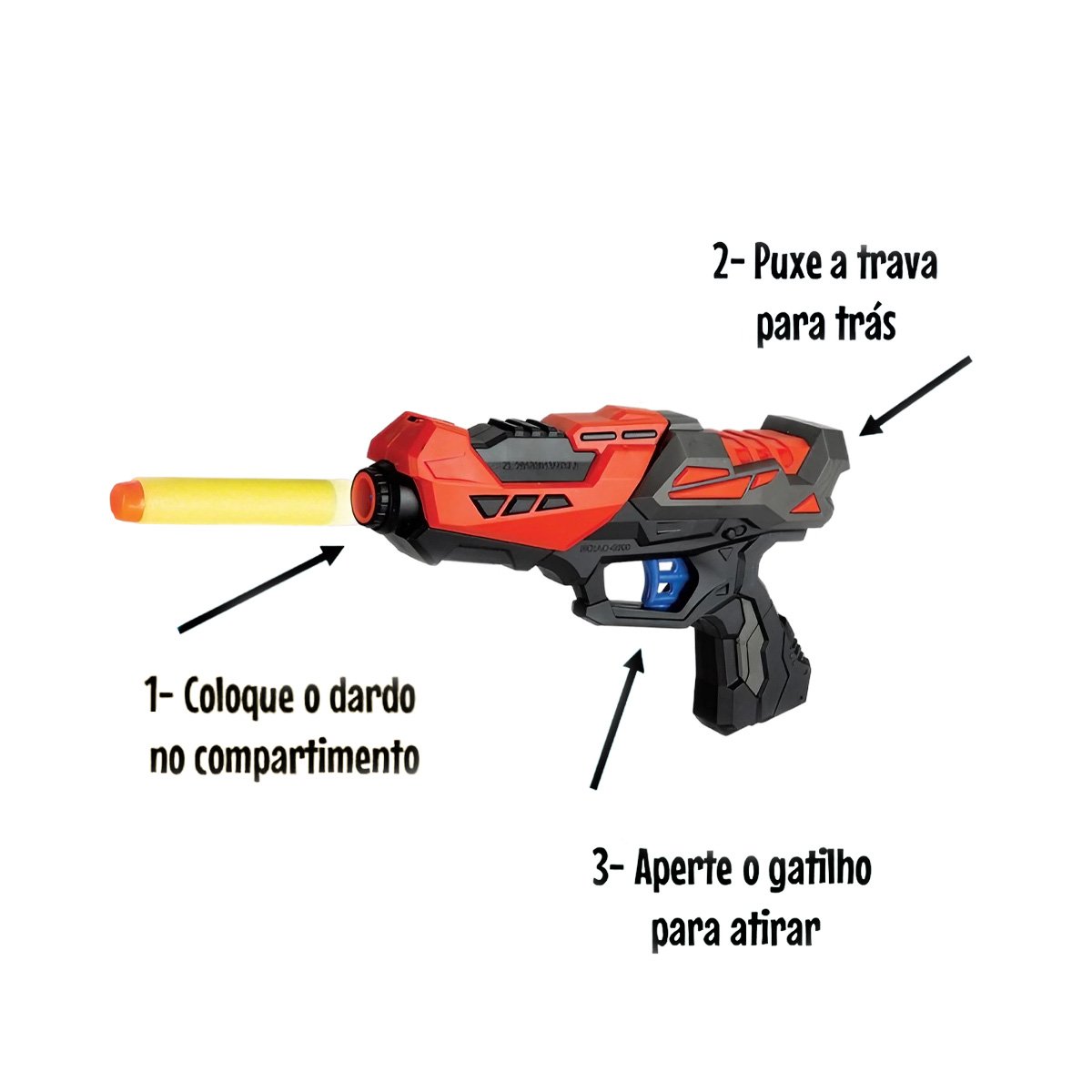 - Fácil de Usar: Basta colocar o dardo no compartimento, puxar a trava e apertar o gatilho para atirar, garantindo diversão rápida e sem complicações.
