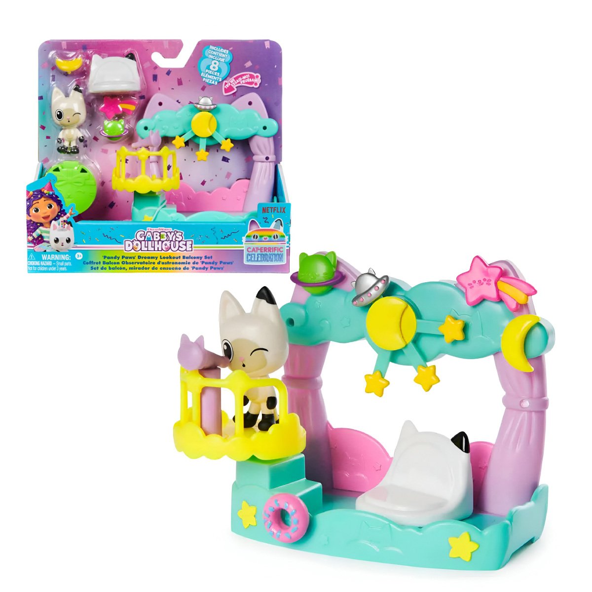 Leve a diversão da série para sua casa com os Conjuntos de Varanda da Gabby’s Dollhouse! Seja com o Smoothie da Cakey Cat, o Show de Talentos da Baby Box Cat ou o Vigia Sonhador do Pandy Paws (vendidos separadamente), a brincadeira é garantida com muita imaginação e fofura!