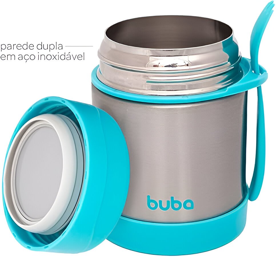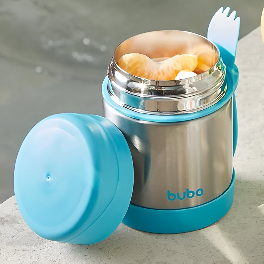 Mantenha a refeição do seu pequeno sempre na temperatura ideal com o Pote Térmico com Talher da Buba! Perfeito para passeios, viagens ou a rotina fora de casa, esse pote prático conserva alimentos quentes ou frios por mais de 5 horas. Com capacidade de 320ml, é ideal para armazenar papinhas, frutas e legumes. Produzido em aço inox com parede dupla, garante resistência, higiene e segurança. Acompanha talher e tem o tamanho perfeito para facilitar a alimentação em qualquer lugar!