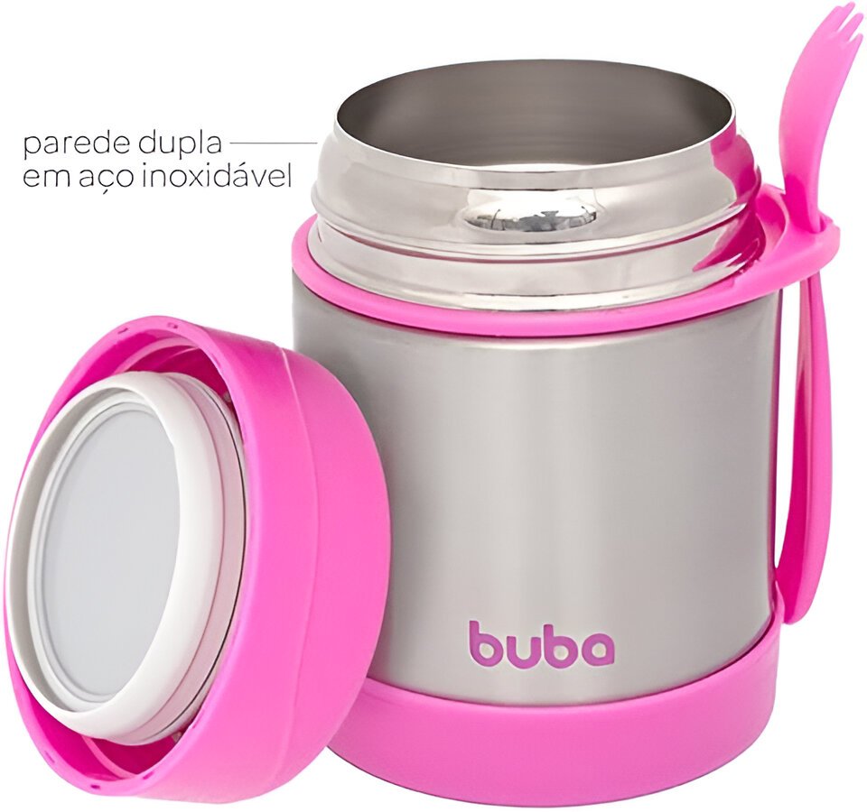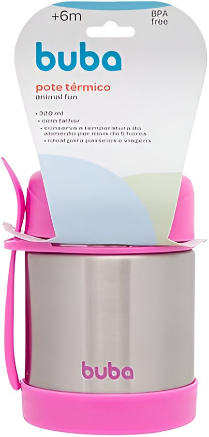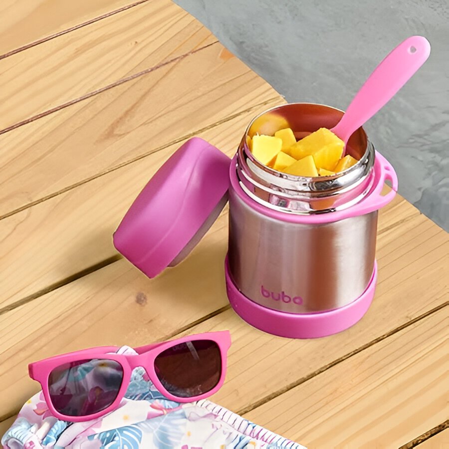 Mantenha a refeição do seu pequeno sempre na temperatura ideal com o Pote Térmico com Talher da Buba! Perfeito para passeios, viagens ou a rotina fora de casa, esse pote prático conserva alimentos quentes ou frios por mais de 5 horas. Com capacidade de 320ml, é ideal para armazenar papinhas, frutas e legumes. Produzido em aço inox com parede dupla, garante resistência, higiene e segurança. Acompanha talher e tem o tamanho perfeito para facilitar a alimentação em qualquer lugar!
