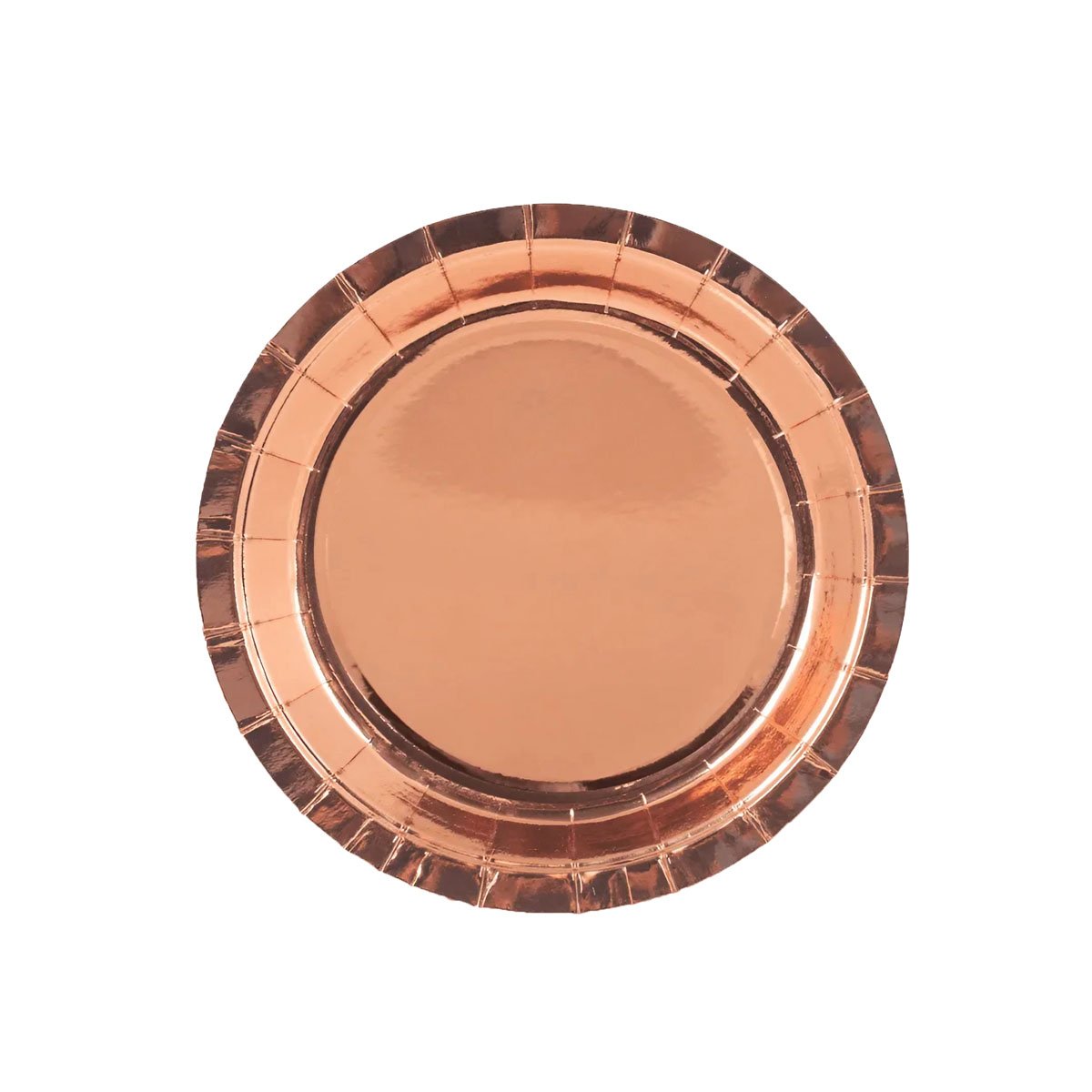 Complete sua festa com o Prato Descartável de Papel Metalizado Rosê Gold e deixe uma impressão duradoura nos seus convidados.