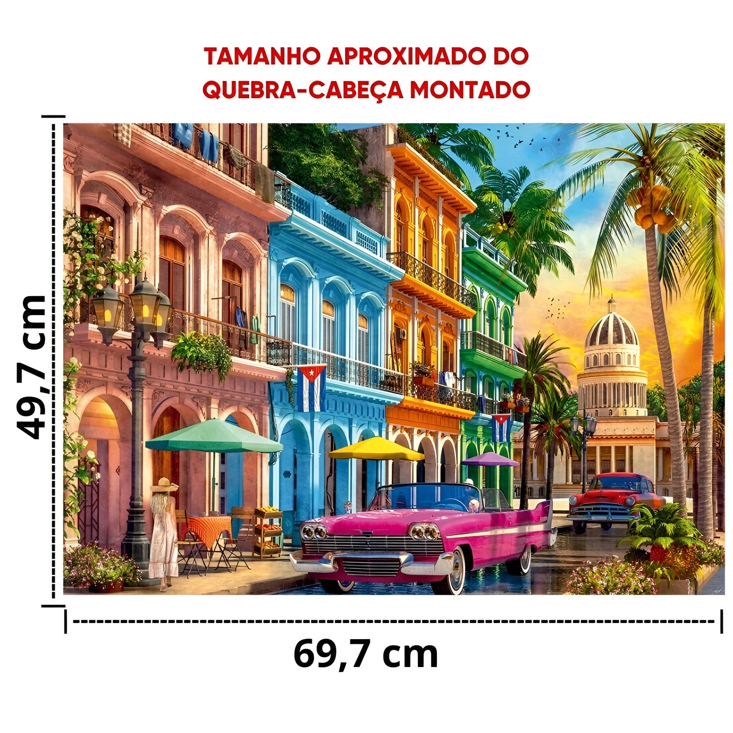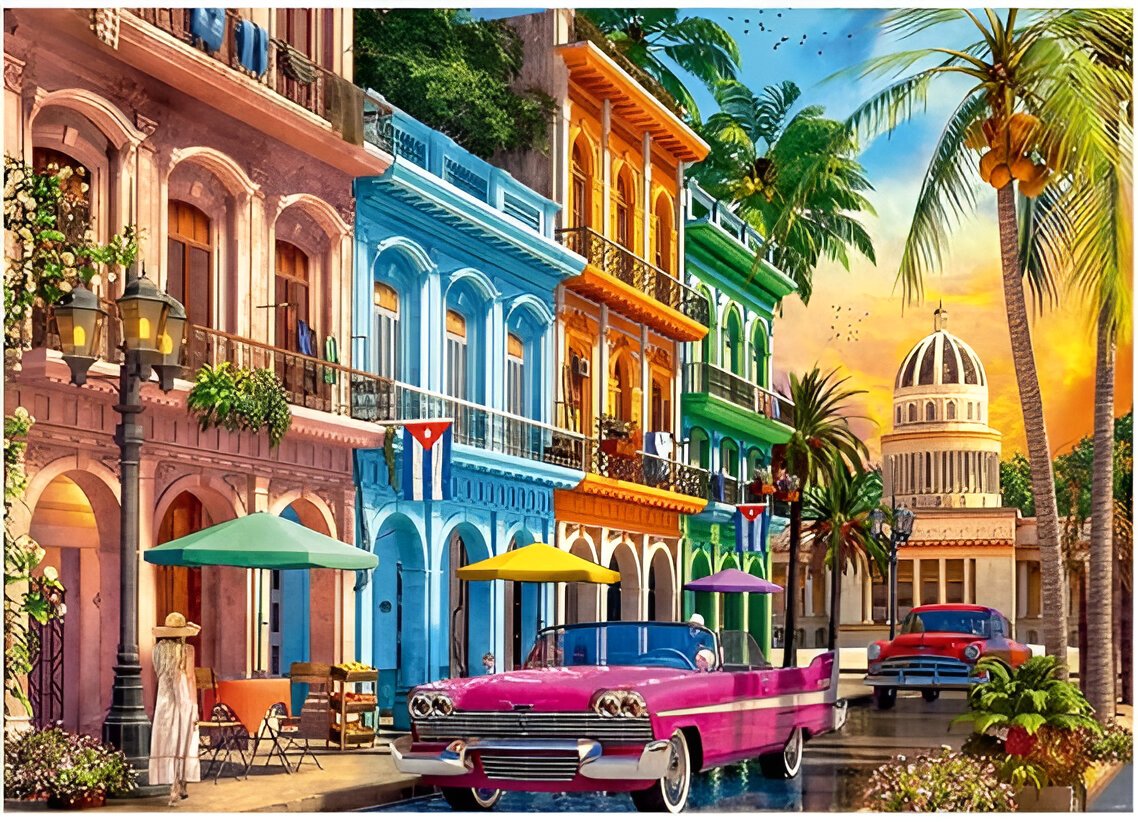 Explore a história de Havana através de suas construções coloridas, varandas adornadas e carros antigos, montando esse quebra-cabeça peça a peça!