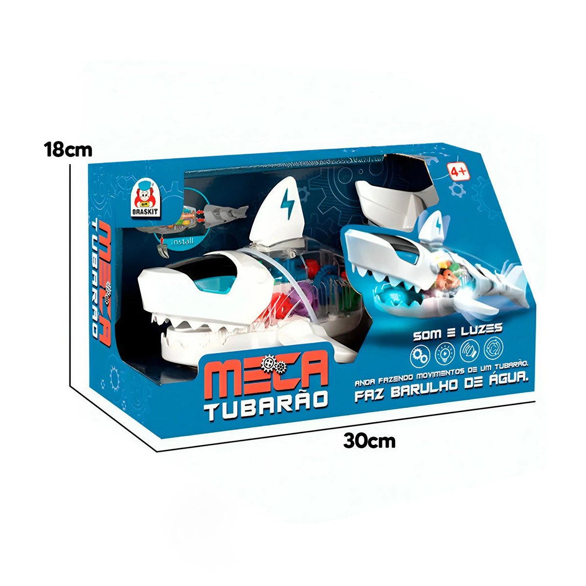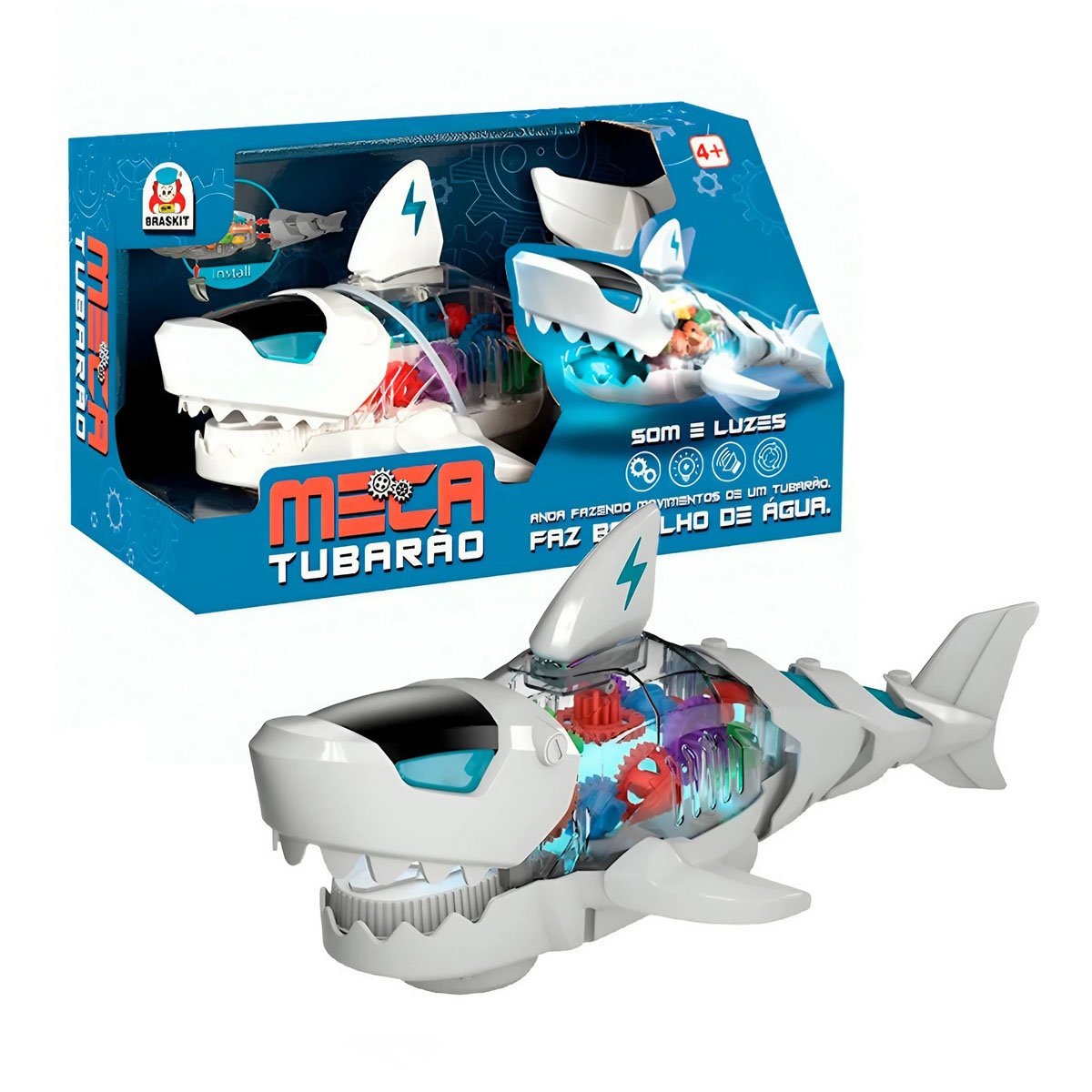 Durante a primeira infância, é essencial que os brinquedos cativem a atenção das crianças. Pensando nisso, a Braskit desenvolveu o Meca Tubarão. Este brinquedo cativante possui a parte superior do seu corpo transparente, revelando suas engrenagens coloridas que giram, proporcionando uma experiência visual fascinante para os pequenos.