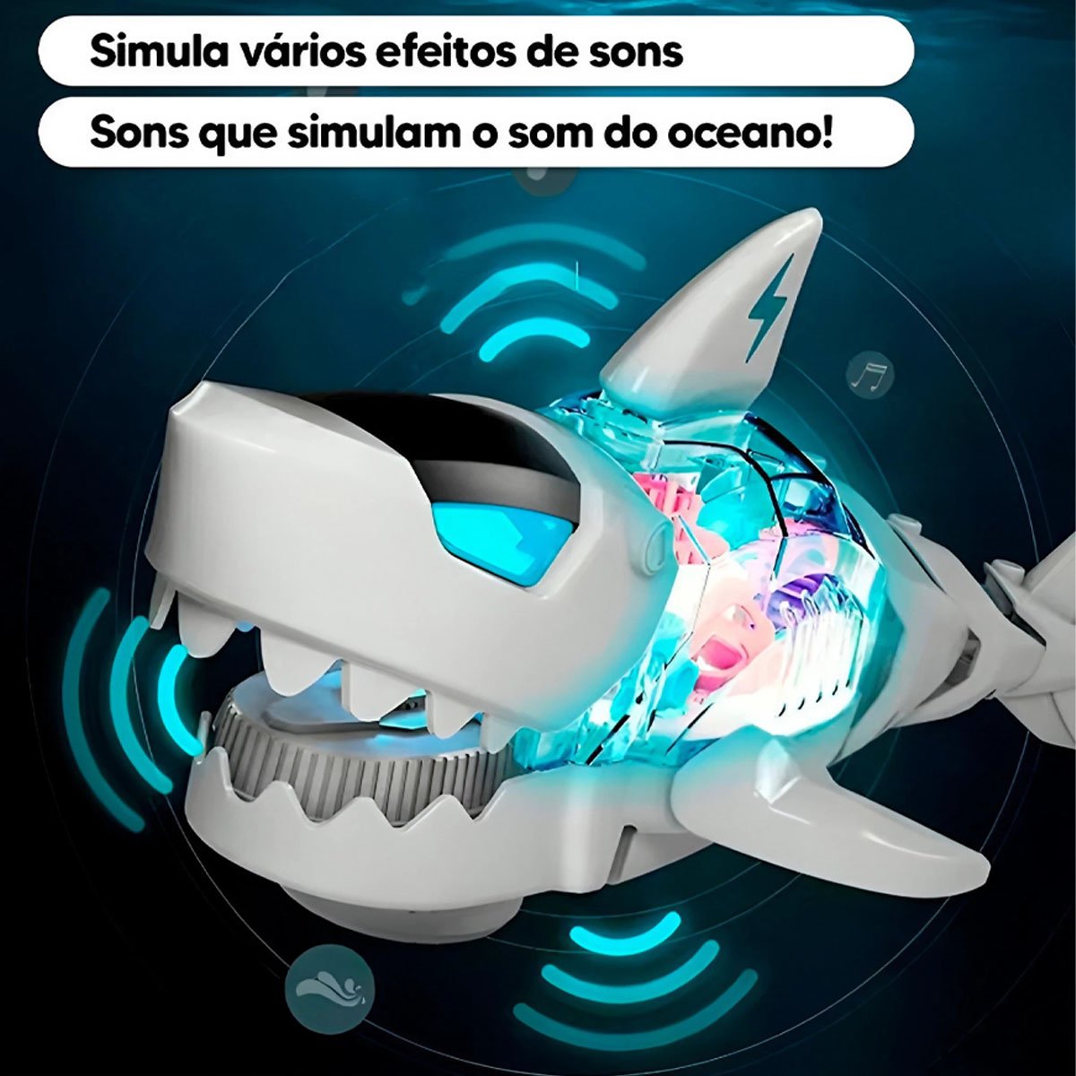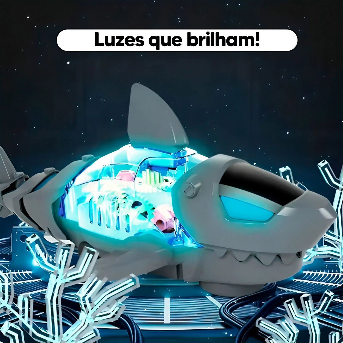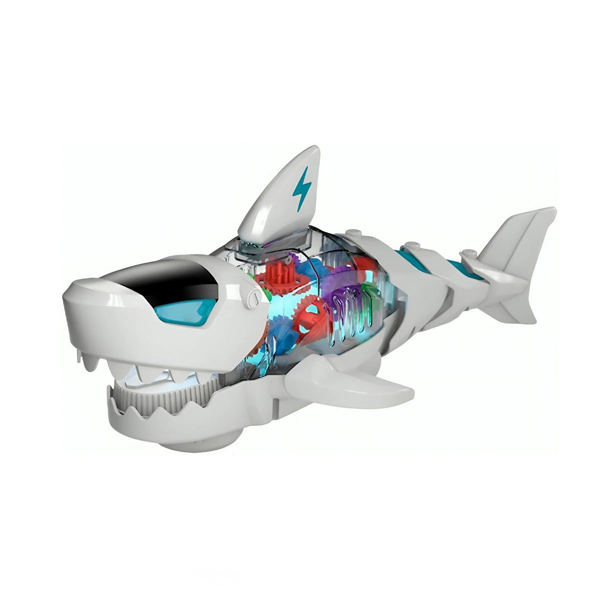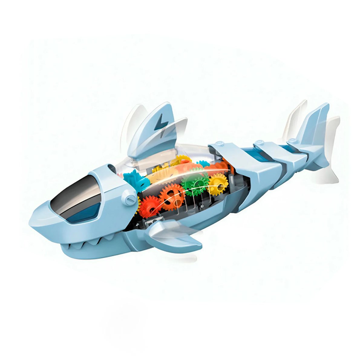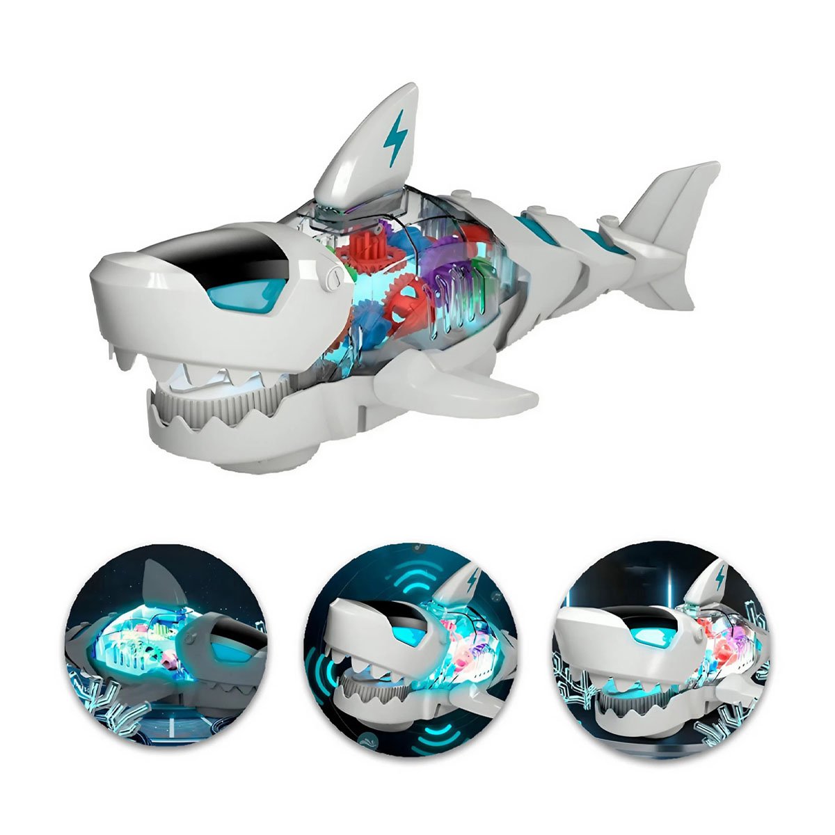 O Meca Tubarão não apenas anda com luzes e emite sons envolventes, mas também possui um sensor de obstáculo. Ao encontrar um obstáculo, o Mega Tubarão muda de direção, enquanto suas engrenagens giram com luzes e ele continua a se mover, acompanhado de uma animada música.