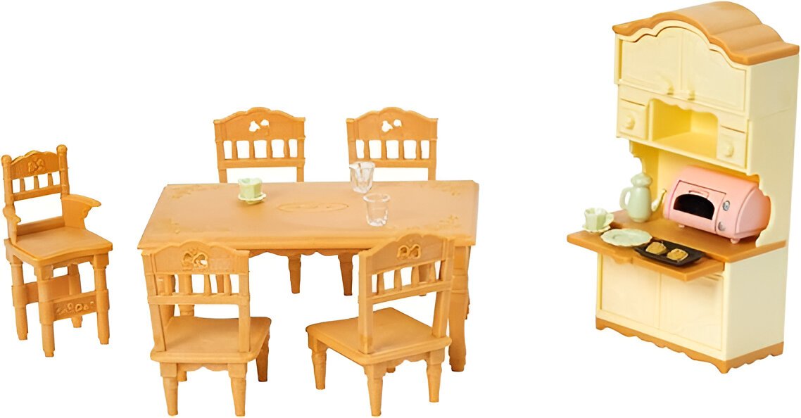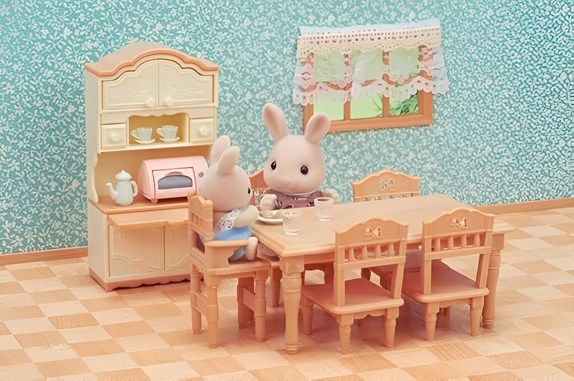 O Conjunto Sala de Jantar Clássica é perfeito para criar momentos especiais com toda a família! Com uma mesa de jantar espaçosa e cadeiras adequadas para até cinco personagens, incluindo uma cadeira de bebê, este conjunto é ideal para reunir todos à mesa. Acompanha também um armário de cozinha adorável para guardar utensílios, além de um conjunto de chá e uma torradeira para completar o ambiente.