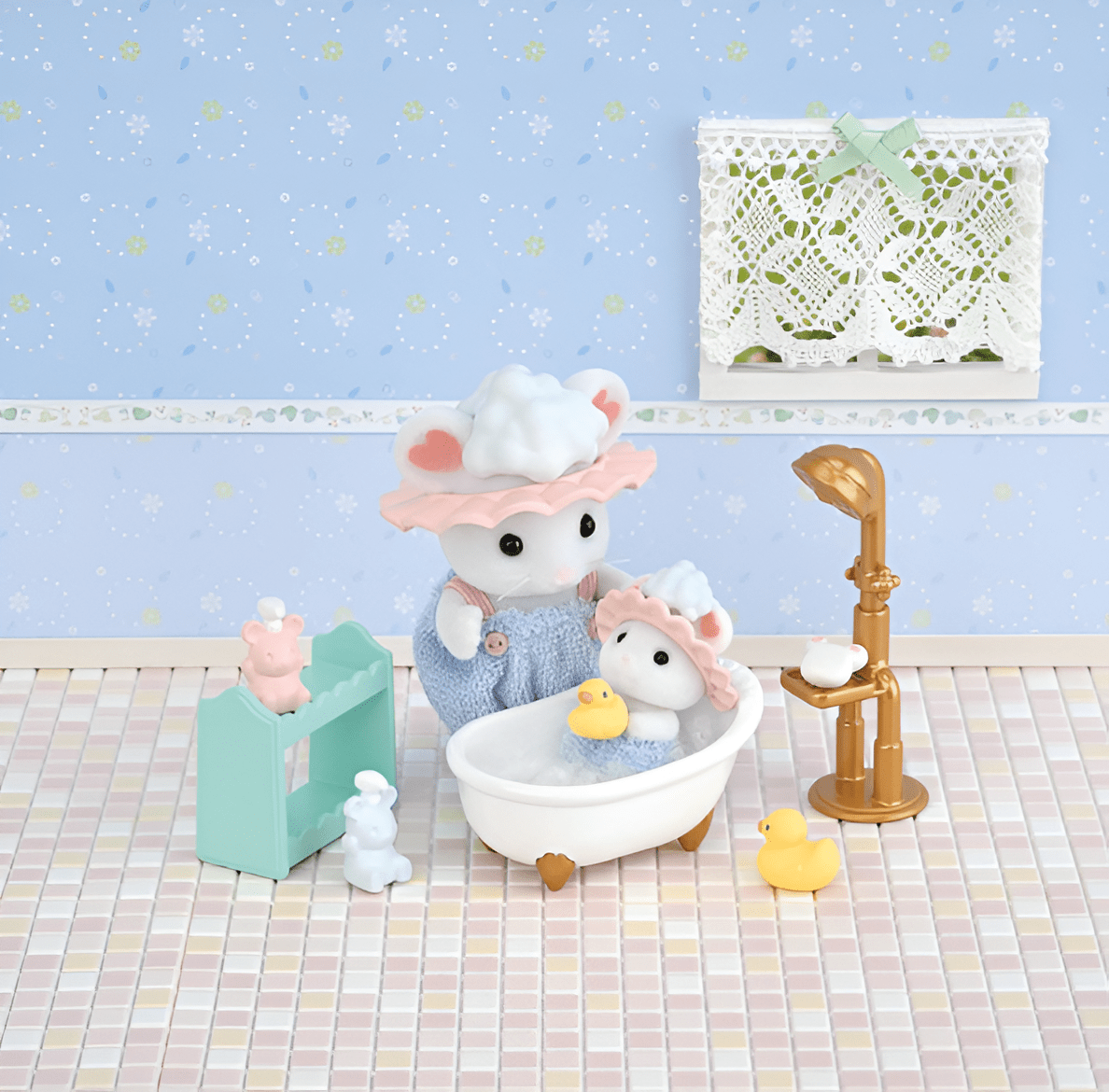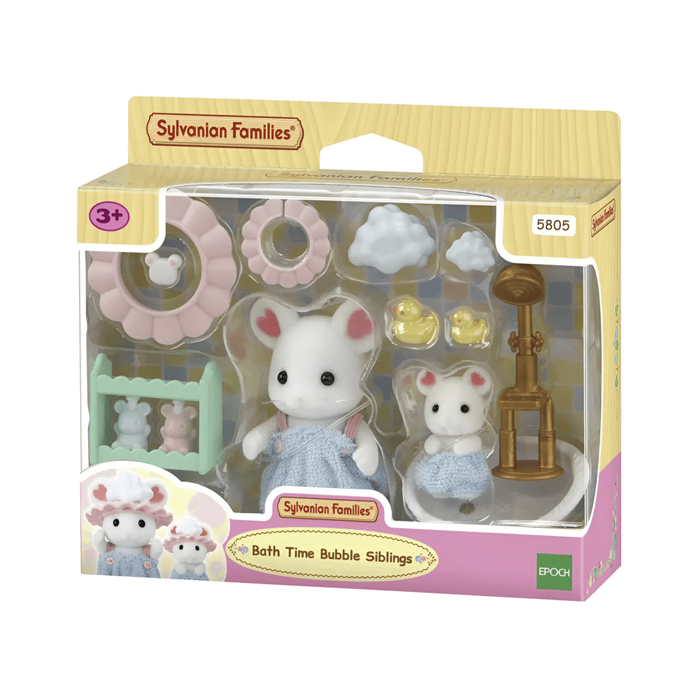 A hora do banho vai ficar ainda mais divertida com o encantador conjunto Sylvanian Families Hora do Banho dos Irmãos Ensaboados da Epoch! Com os fofos Ratos Marshmallow, o menino e o bebê de berço, e vários acessórios temáticos, este playset transforma o momento do banho em uma brincadeira cheia de imaginação e carinho. Perfeito para criar histórias envolventes, o kit é rico em detalhes e promove o cuidado e o faz de conta.