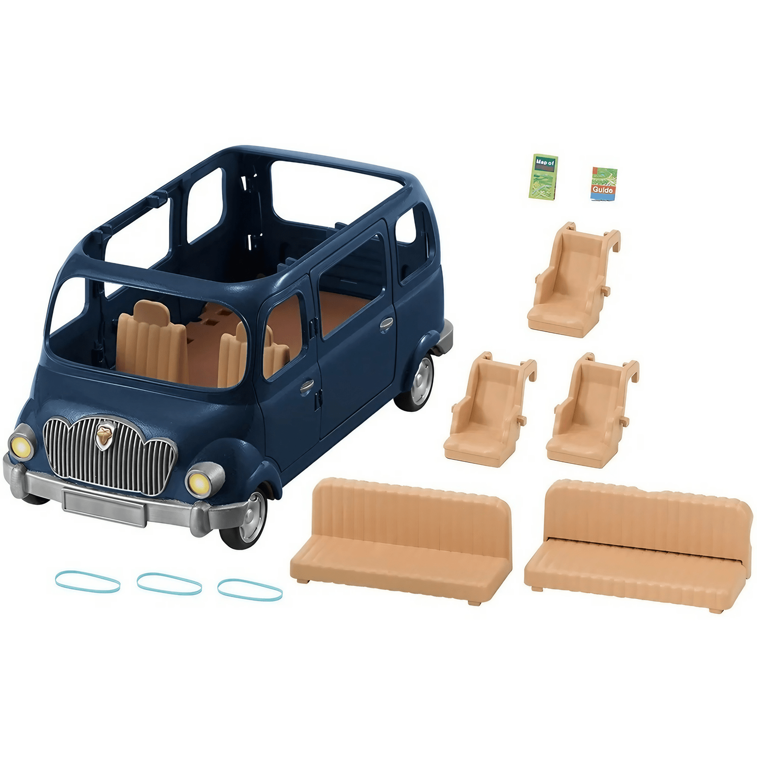 Introduzindo a incrível Minivan Família Sete Lugares das Sylvanian Families! Esta minivan espaçosa é perfeita para aventuras em família, capaz de acomodar todos os membros da família. Com três portas, três bancos de bebê, cinto de segurança, mapa e guia, esta minivan proporciona conforto e segurança em todas as viagens.