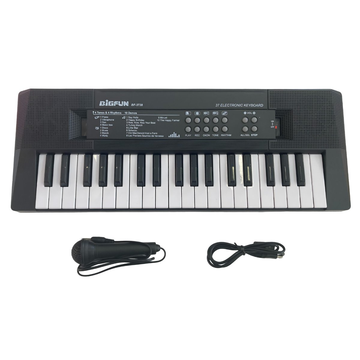 - 37 teclas para explorar diferentes notas e ritmos.