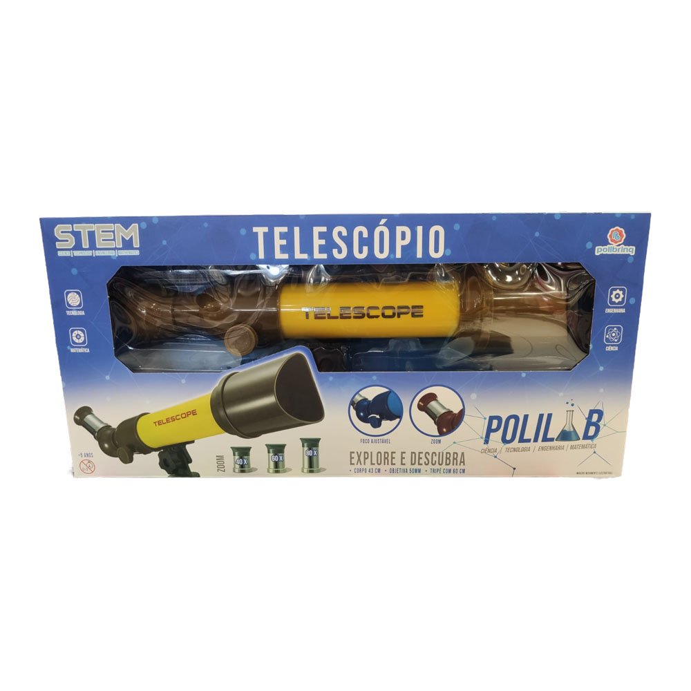 Explore o Universo com o Telescópio Astronômico STEM da Polilab. Com um zoom poderoso de 40x, 60x e 80x, este telescópio permite observar detalhes fascinantes das estrelas, planetas e outros corpos celestes. Possui um corpo robusto de 43cm e uma objetiva de 50mm para imagens nítidas e claras do espaço sideral. Seu foco ajustável e o tripé resistente de 60cm garantem uma experiência de observação envolvente e estável. Ideal para crianças iniciantes na astronomia. Prepare-se para aventuras intergalácticas com o Telescópio Astronômico STEM da Polilab.
