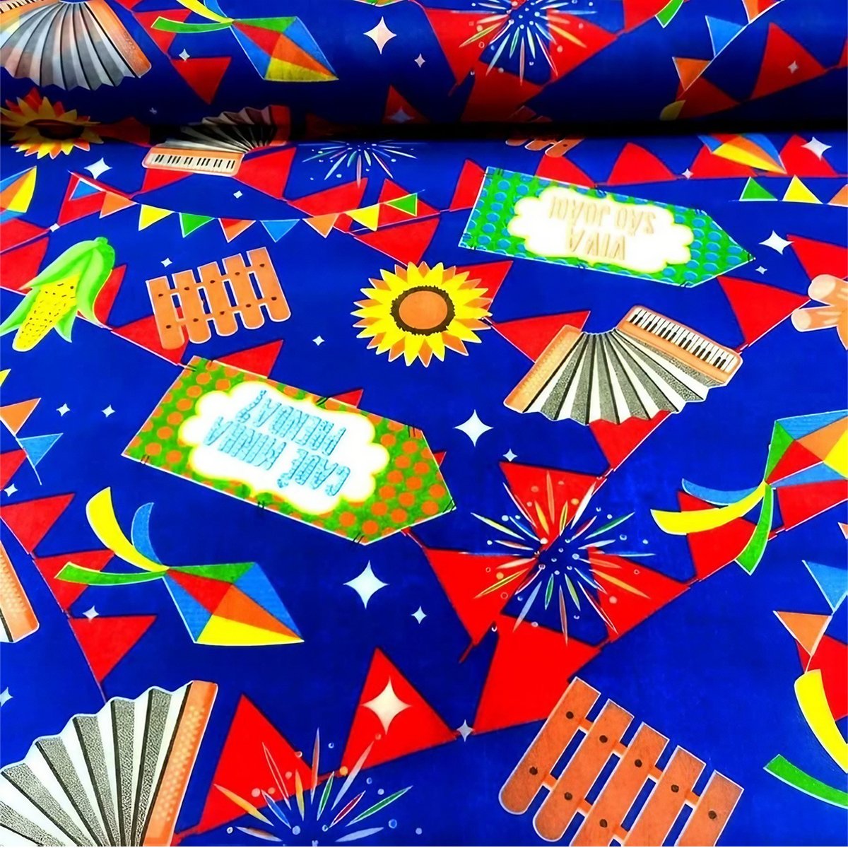- 1 Metro de Tnt Estampado Festa Junina Arraiá Azul.