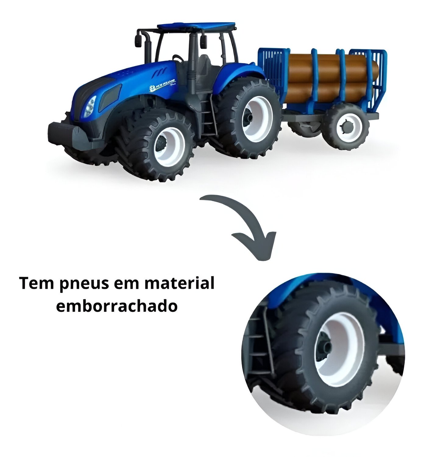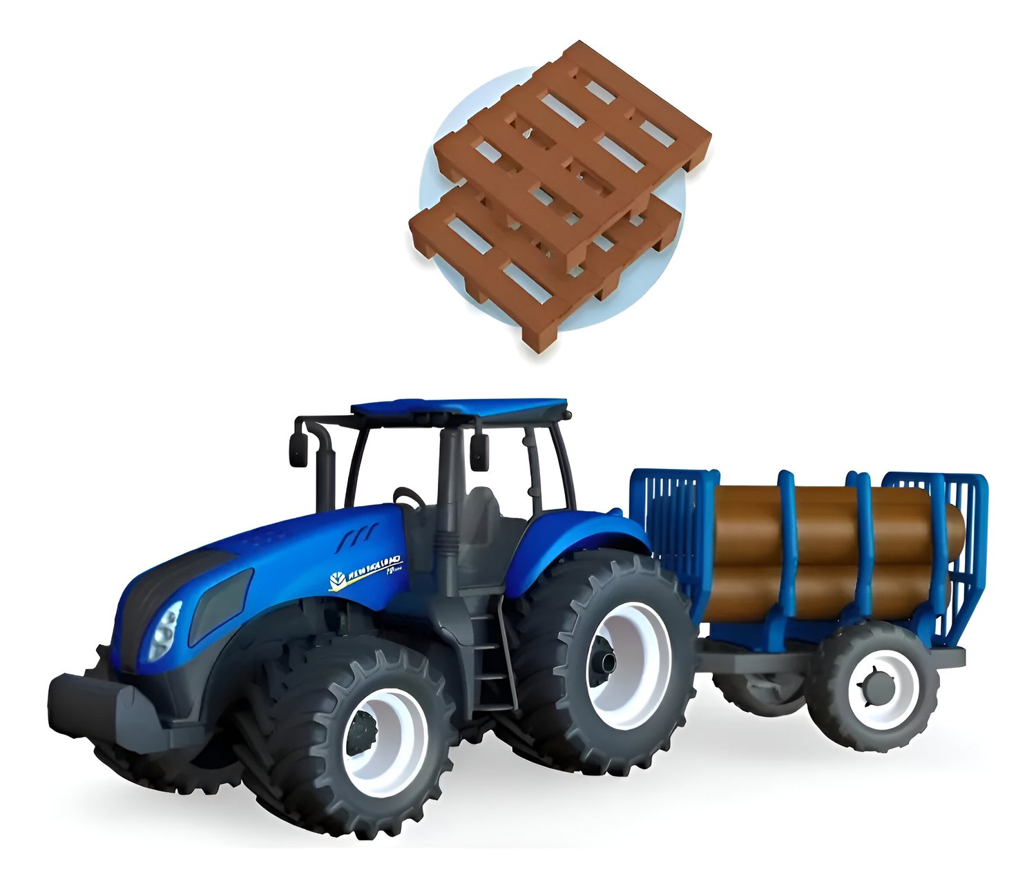 O Trator Miniatura New Holland Tora é um brinquedo realista e cheio de detalhes, perfeito para crianças que adoram o universo agrícola. Com rodas emborrachadas, cabine transparente, 2 pallets e 5 toras, oferece muita diversão e estimula brincadeiras ao ar livre e a imaginação.