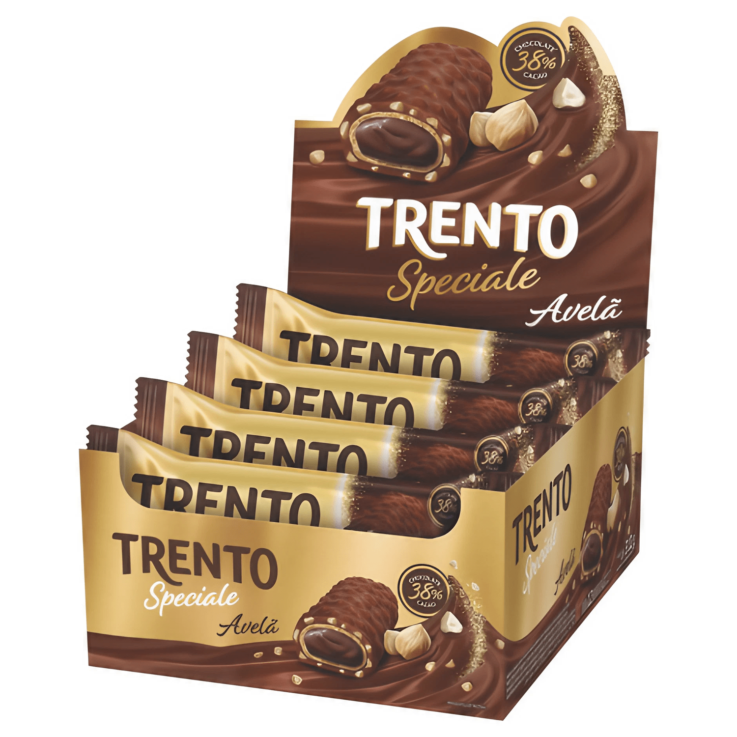 Explore o delicioso Trento Chocolate, um wafer irresistível que harmoniza a crocância única com a cremosidade do recheio de chocolate, tudo coberto por uma generosa camada de chocolate ao leite com 38% de cacau. Trento destaca-se pela excepcional combinação de texturas e sabores, proporcionando uma experiência única para os amantes de chocolate. Cada mordida revela a qualidade superior do chocolate e a perfeição da fusão entre crocância e cremosidade.