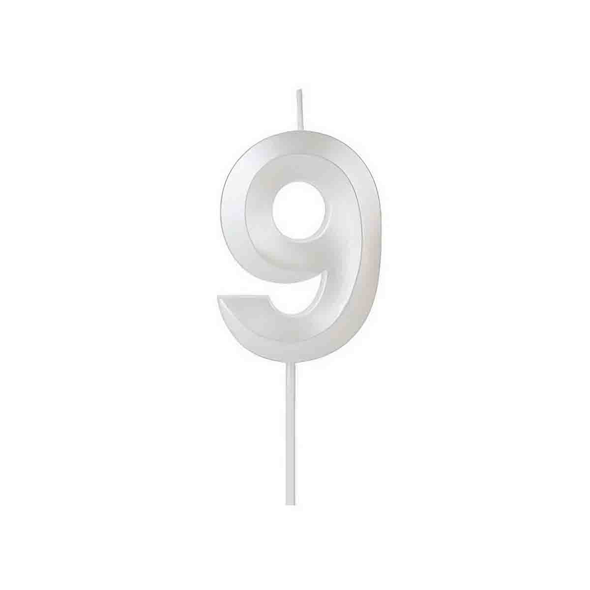 Vela Design Perolizada Branca Número 9 Silver Festas