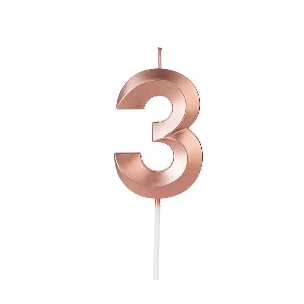 Vela Design Perolizada Rosê Número 3 Silver Festas