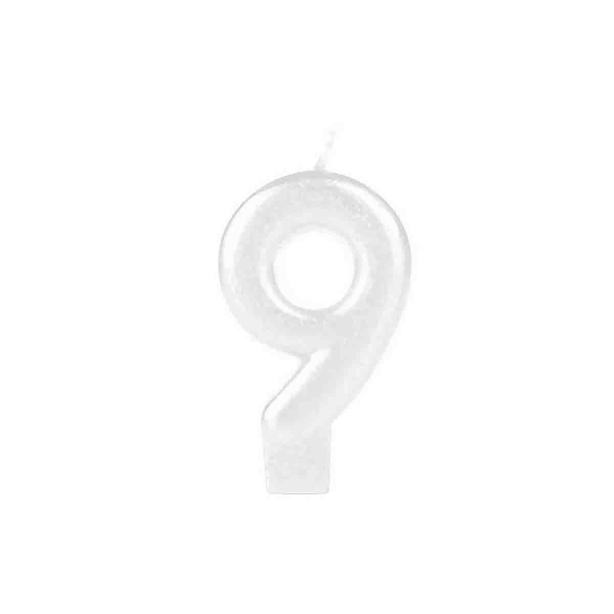 Vela Glitter Branca Pequena Número 9 Silver Festas
