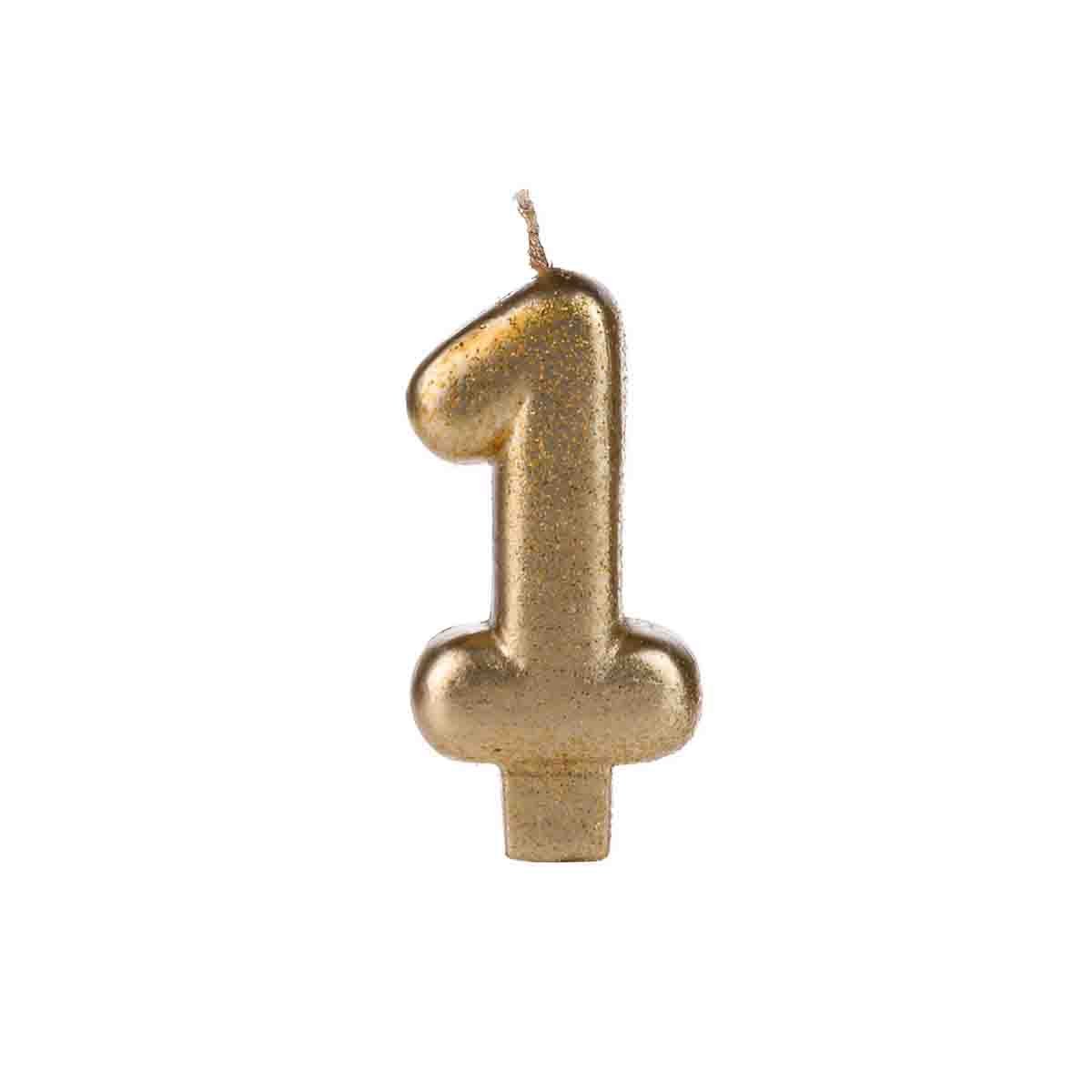 Vela Glitter Pequena Dourada Número 1 Silver Festas