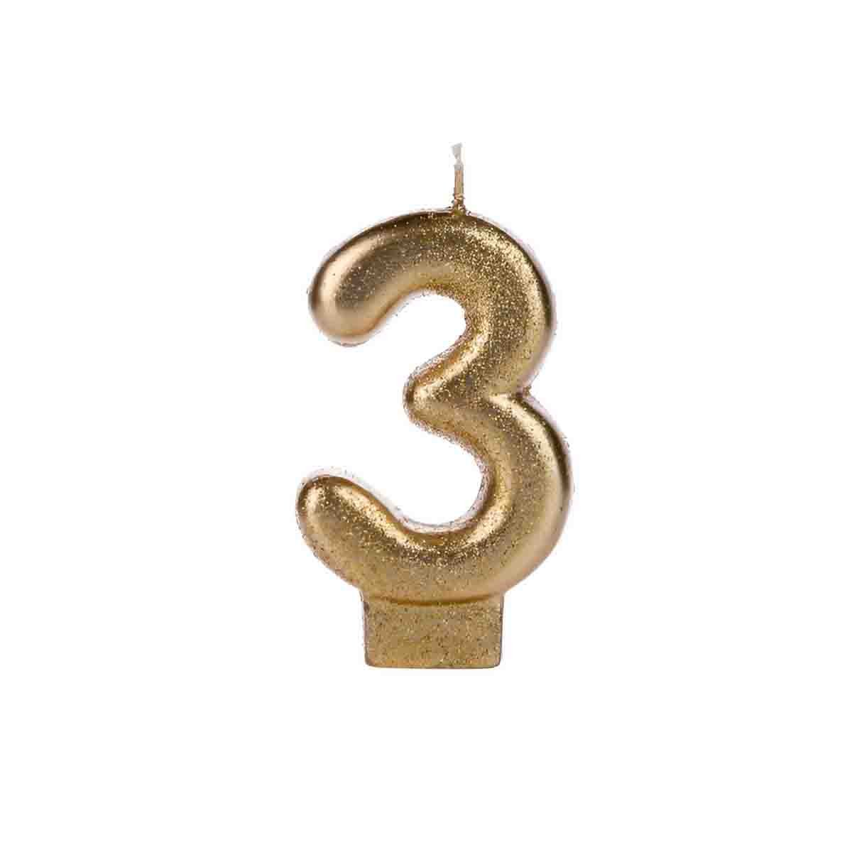 Vela Glitter Pequena Dourada Número 3 Silver Festas