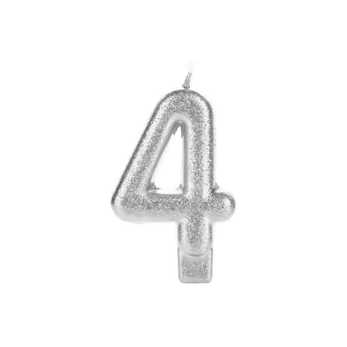Vela Glitter Pequena Prata Número 4 Silver Festas