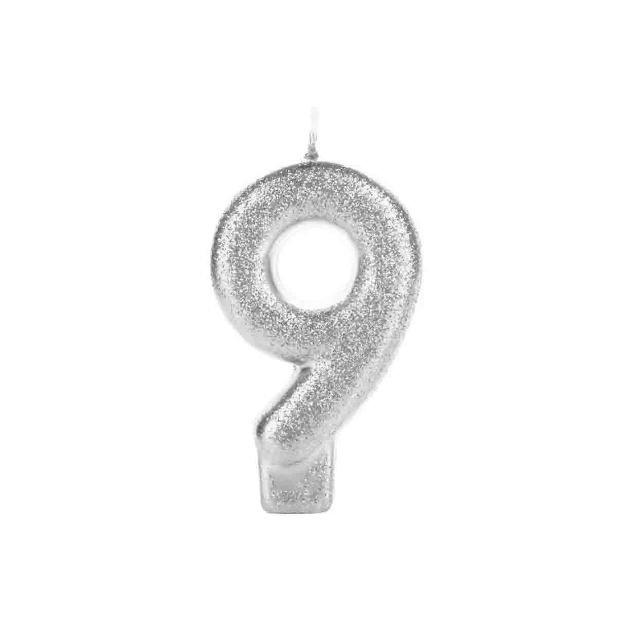 Vela Glitter Pequena Prata Número 9 Silver Festas