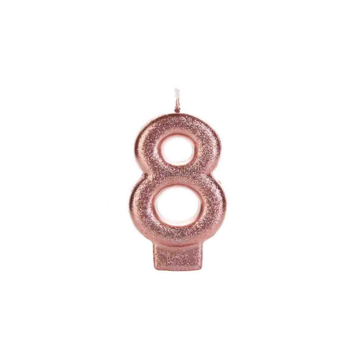 - 1 unidade da Vela Glitter Rosê Pequena Número 8.