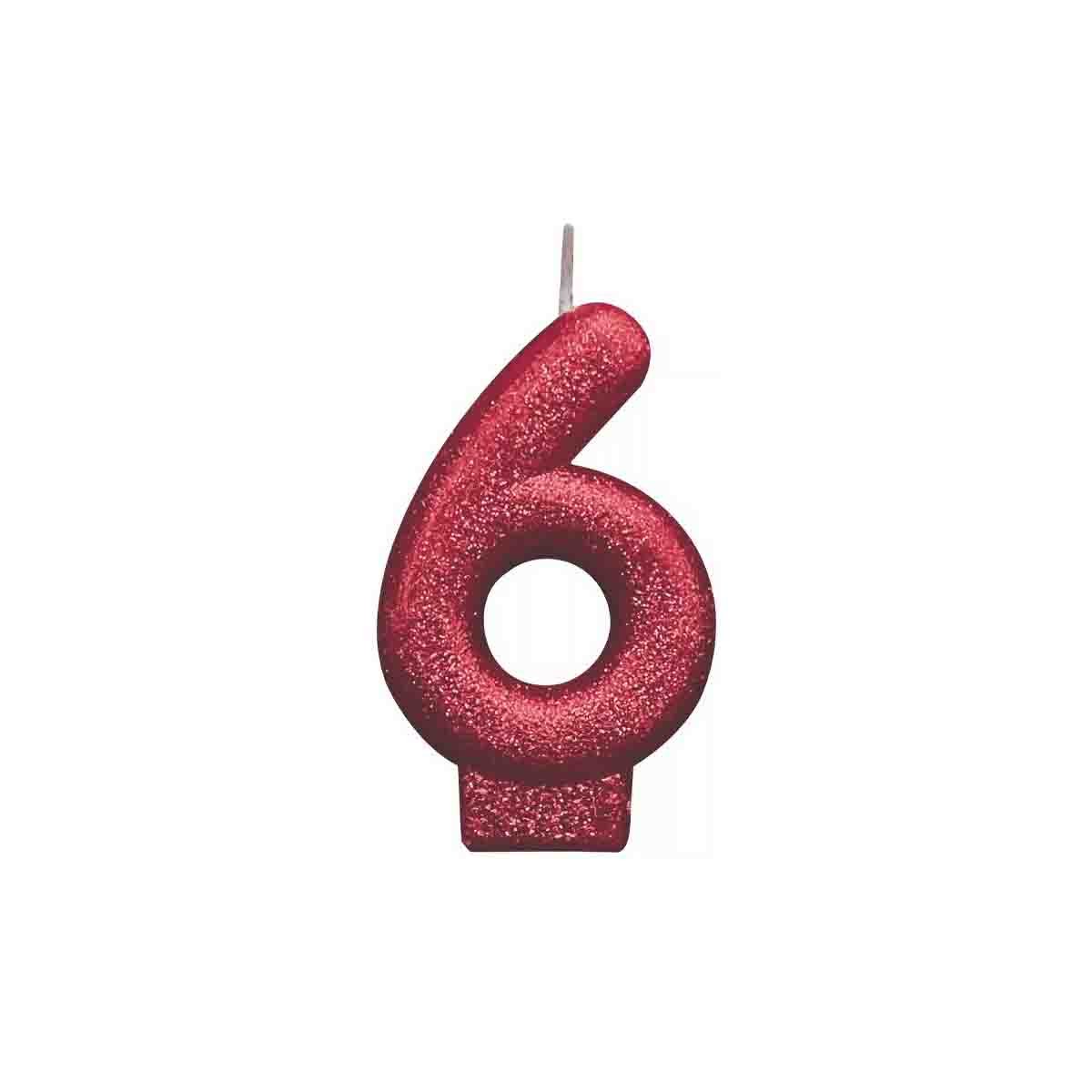 - 1 unidade da Vela Para Aniversário Glitter Vermelha Número 6.