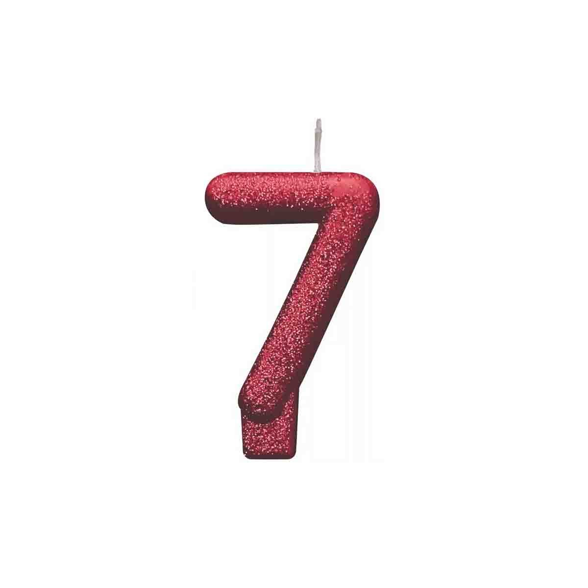- 1 unidade da Vela Para Aniversário Glitter Vermelha Número 7.