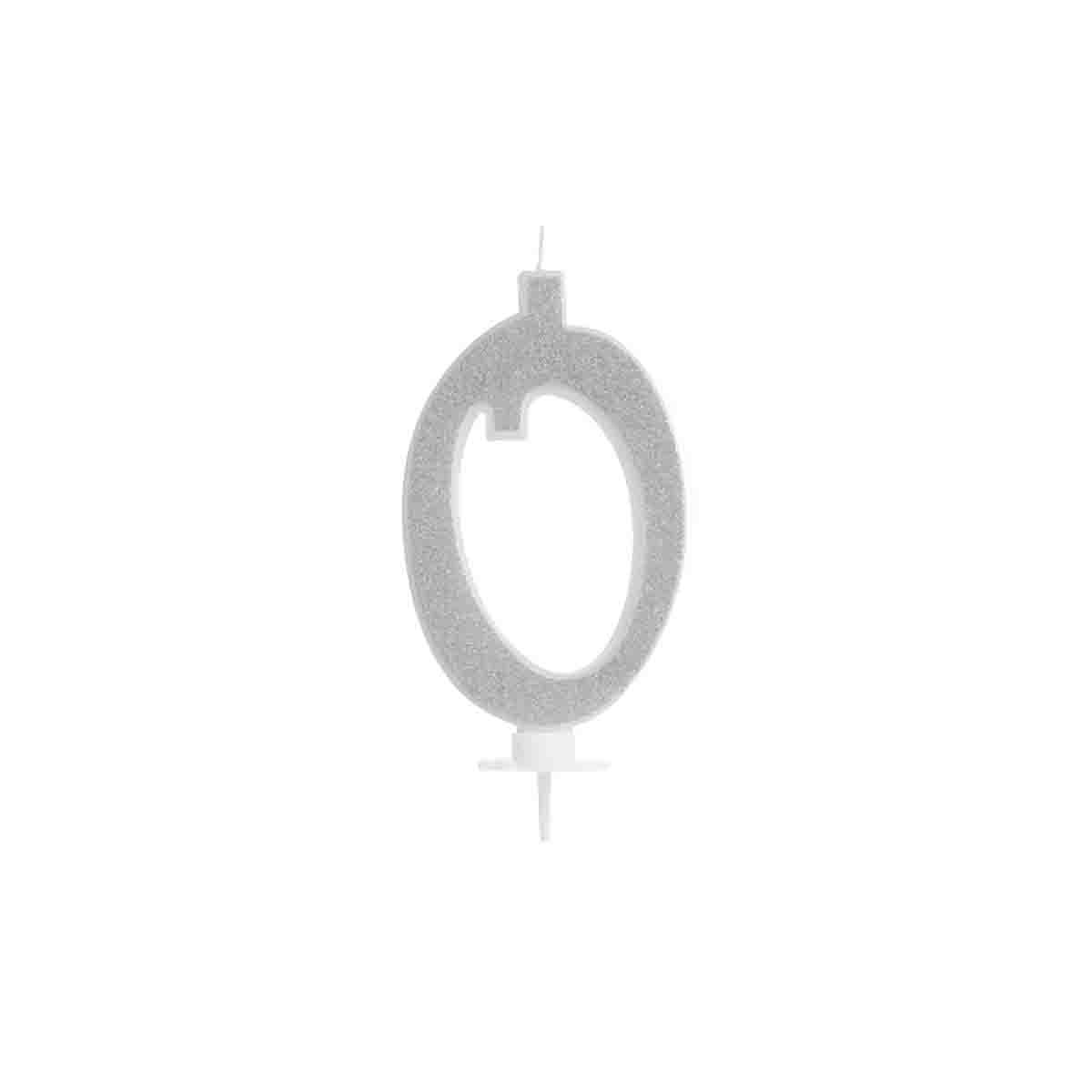 Vela Glitter Prata Grande Número 0 Silver Festas
