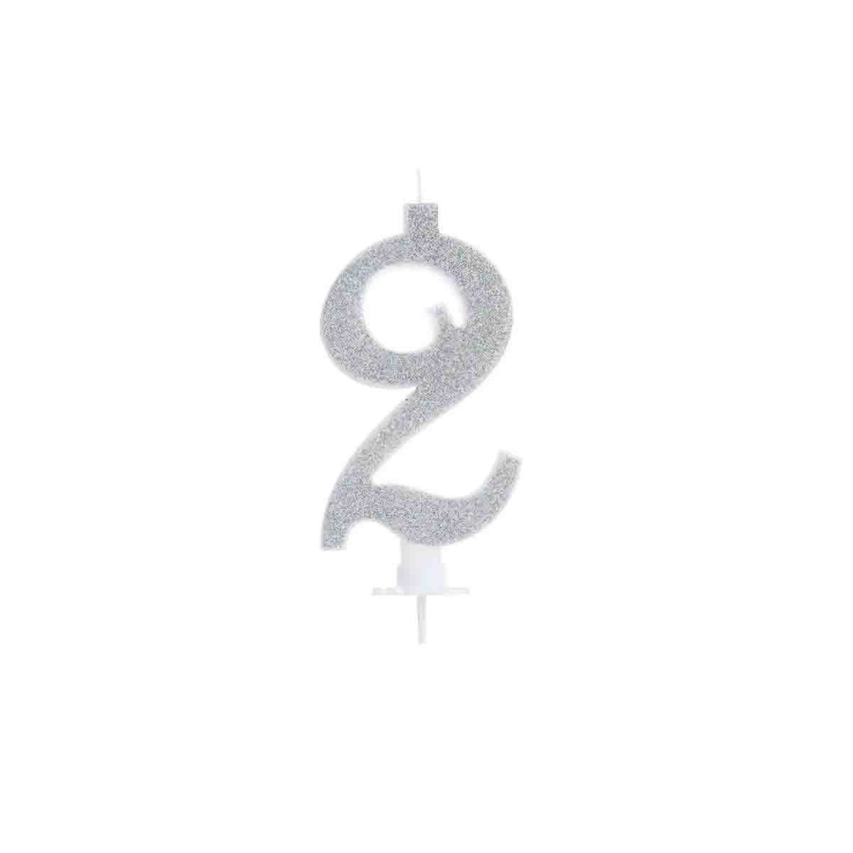 Vela Glitter Prata Grande Número 2 Silver Festas