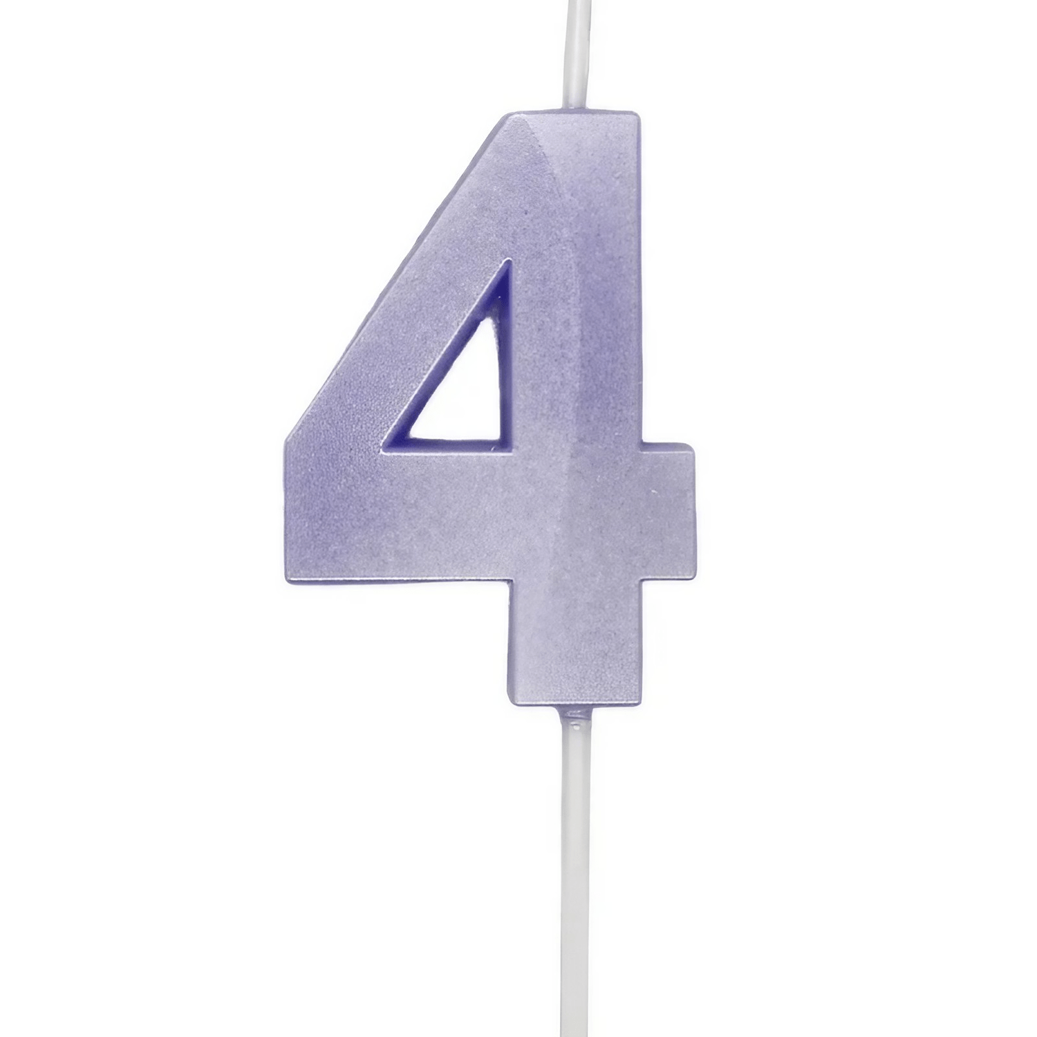 Vela Mini Design Lilás Candy Número 4 Silver Festas