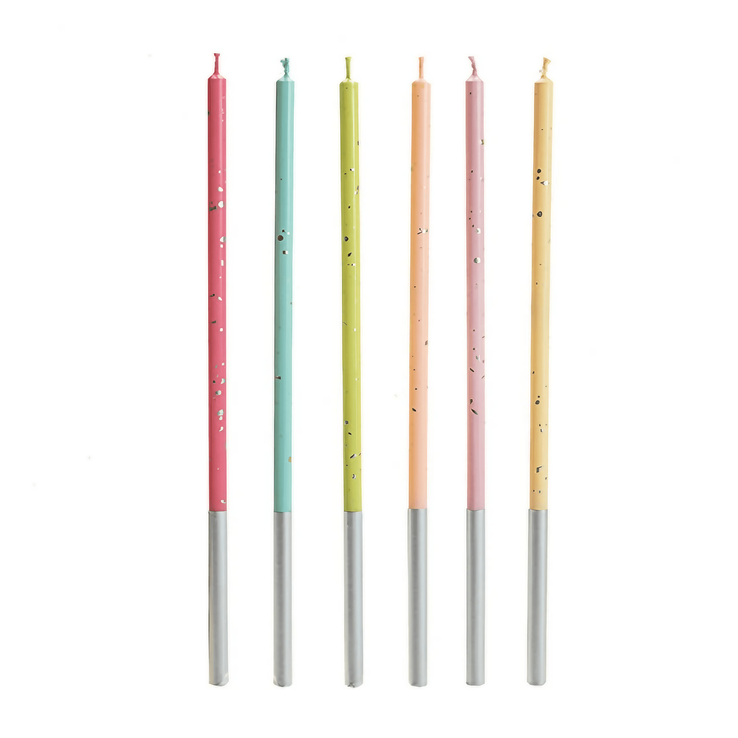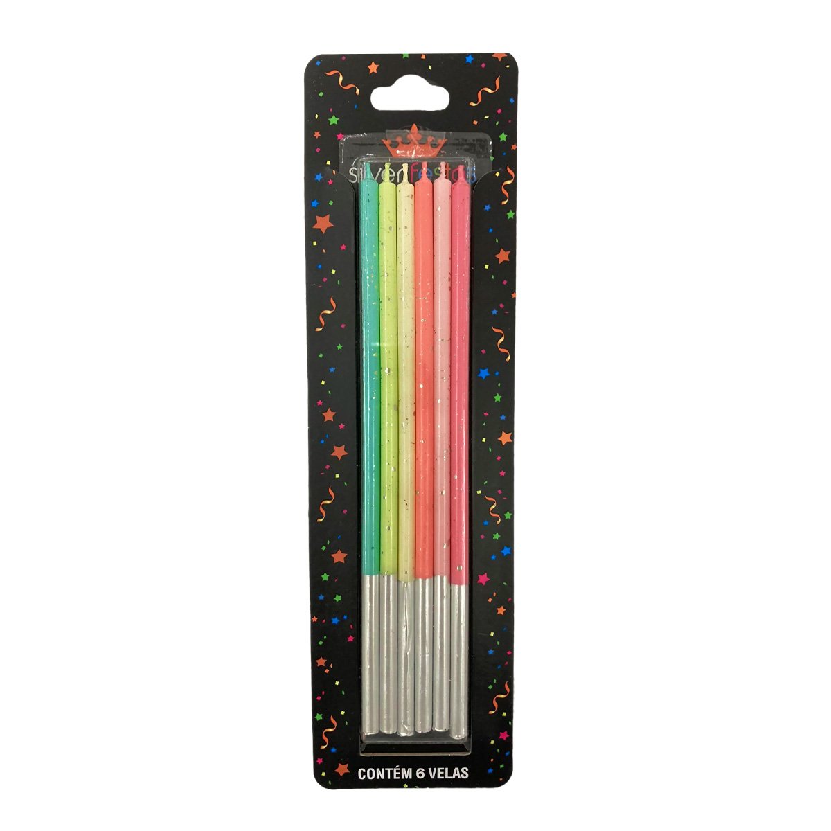Vela Palito Grande Arco-Íris Glitter C/6 Unidades Silver Festas