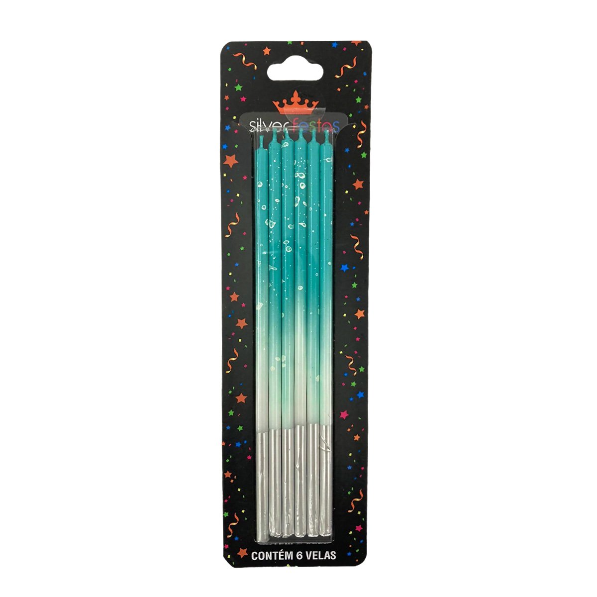 - 1 Pacote com 6 unidades da Vela Grande Dégradé Azul Candy.