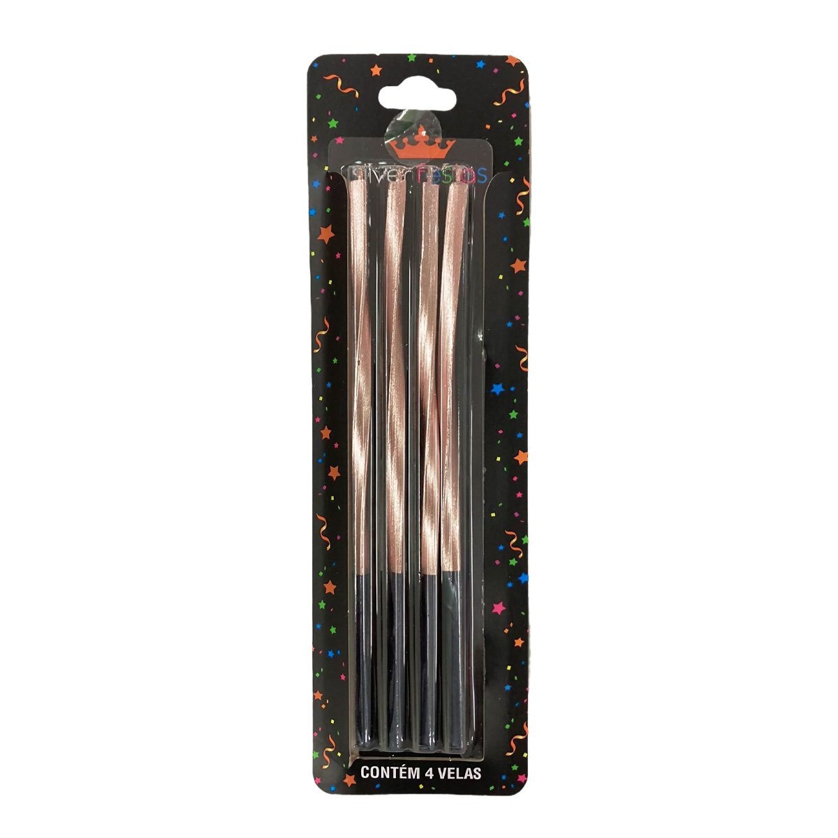 - 1 Pacote com 4 unidades de Vela Torcida Rosê Gold.