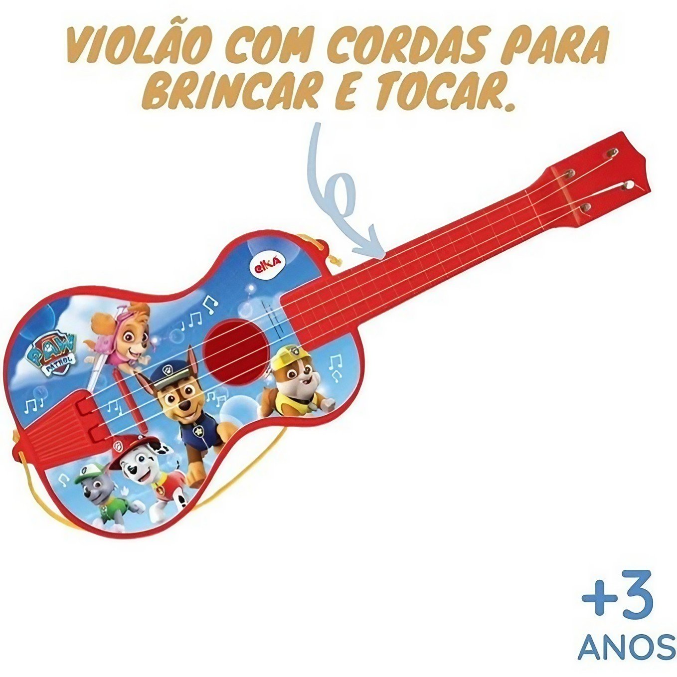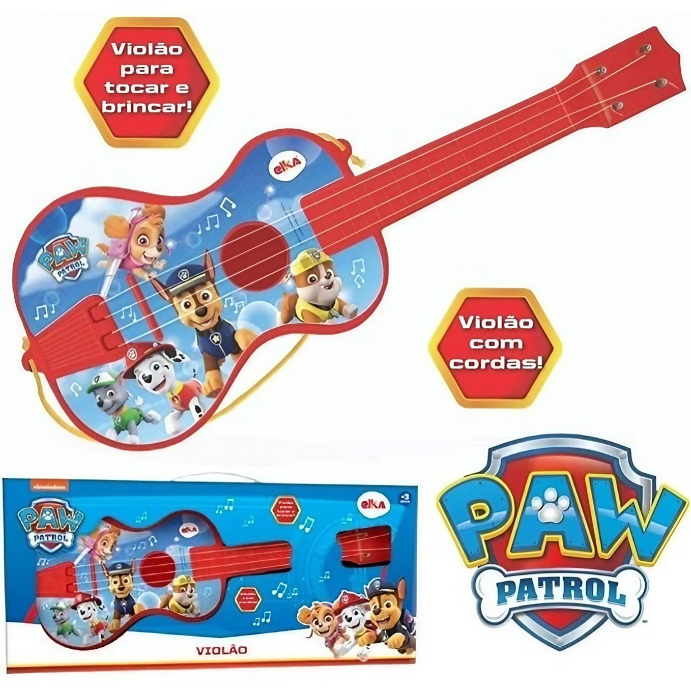 Deixe a diversão ainda mais animada com o Violão da Patrulha Canina! Este violão possui cordas reais, proporcionando uma experiência divertida para as crianças que desejam brincar e tocar suas músicas favoritas.
